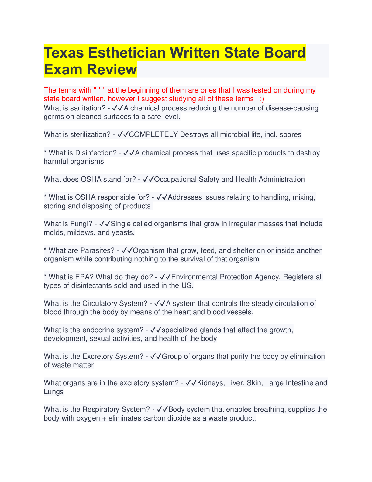 Physiology > EXAM REVIEW > texas Esthetician Written State Board Exam Review (All)