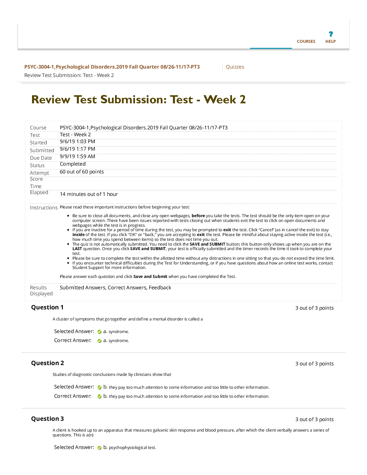 Physiology > EXAM > PSYC 3004 Week 3 Quiz Psychological Disorders Walden University latest solution 2020 (All)