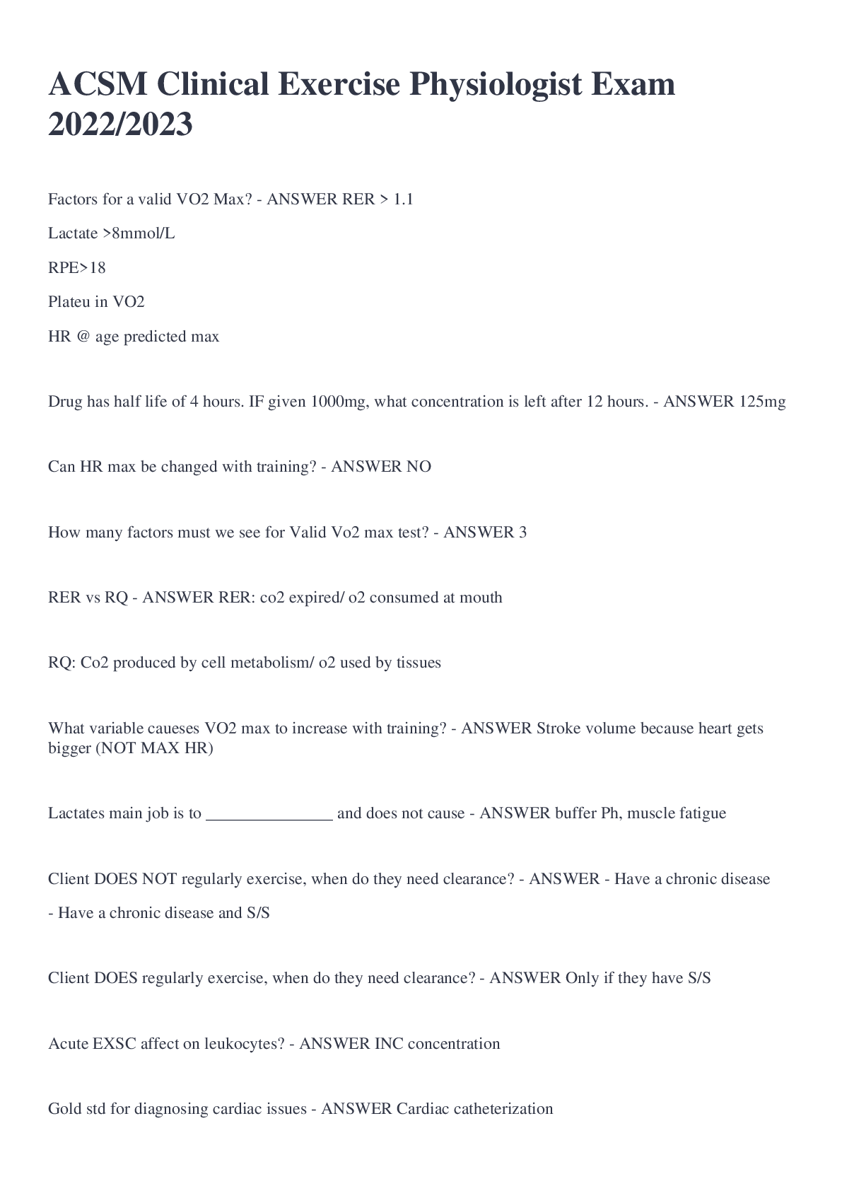 Medical Studies > EXAM > ACSM Clinical Exercise Physiologist Exam 2022/2023 (All)