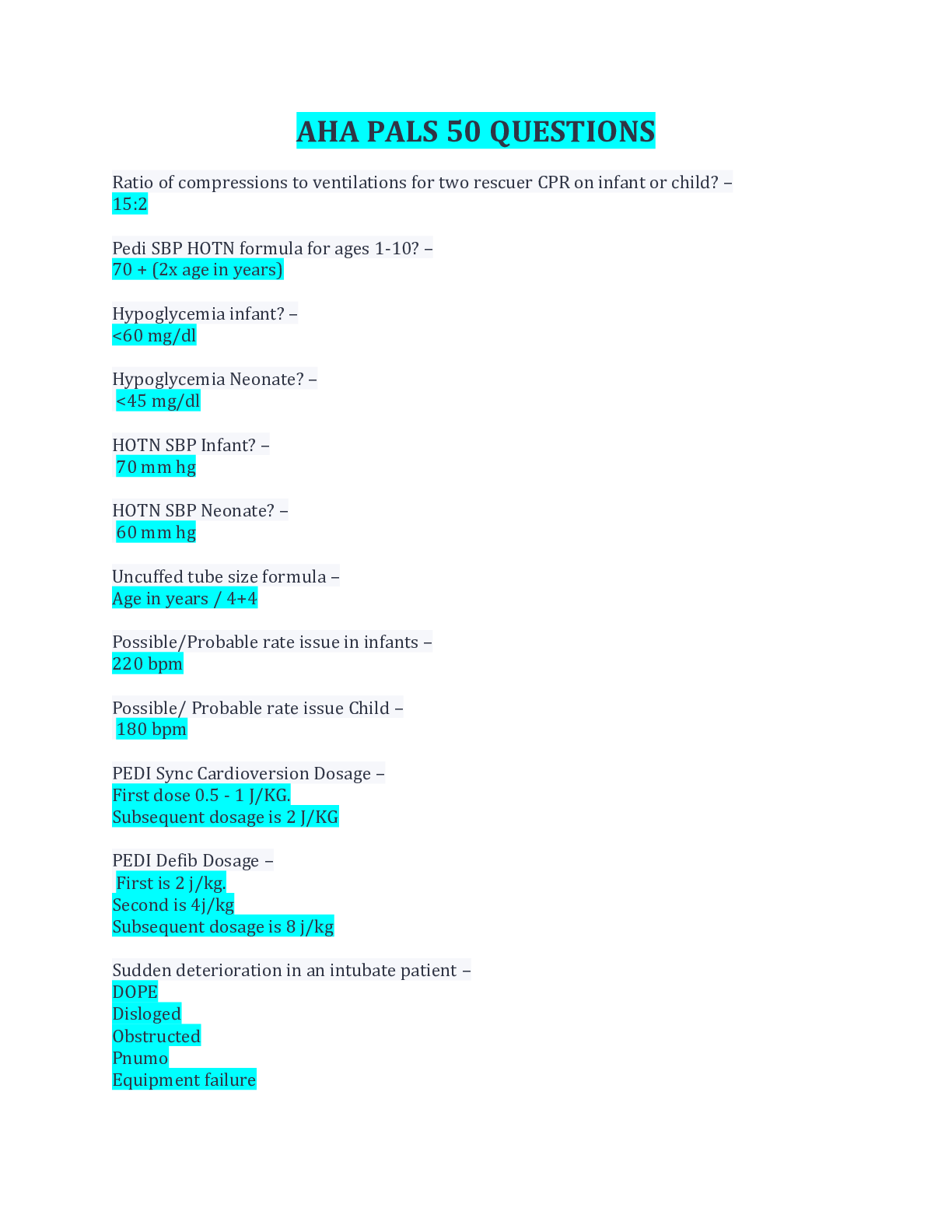 Biology > EXAM > AHA PALS 50 QUESTIONS AND ANSWERS( COMPLETE SOLUTION DWNLOAD TO SCORE AN A) (All)