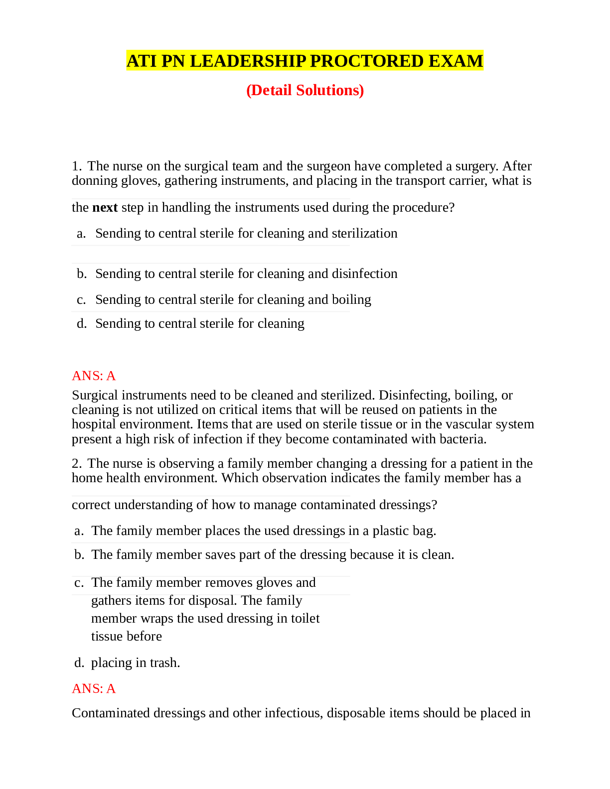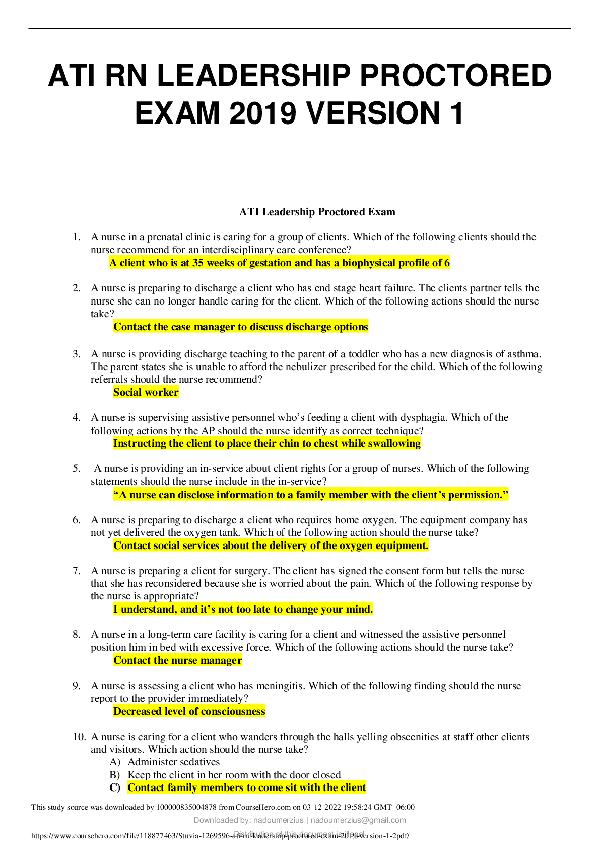 Leadership & Management > ATI > ATI Proctored Leadership Exam (All)