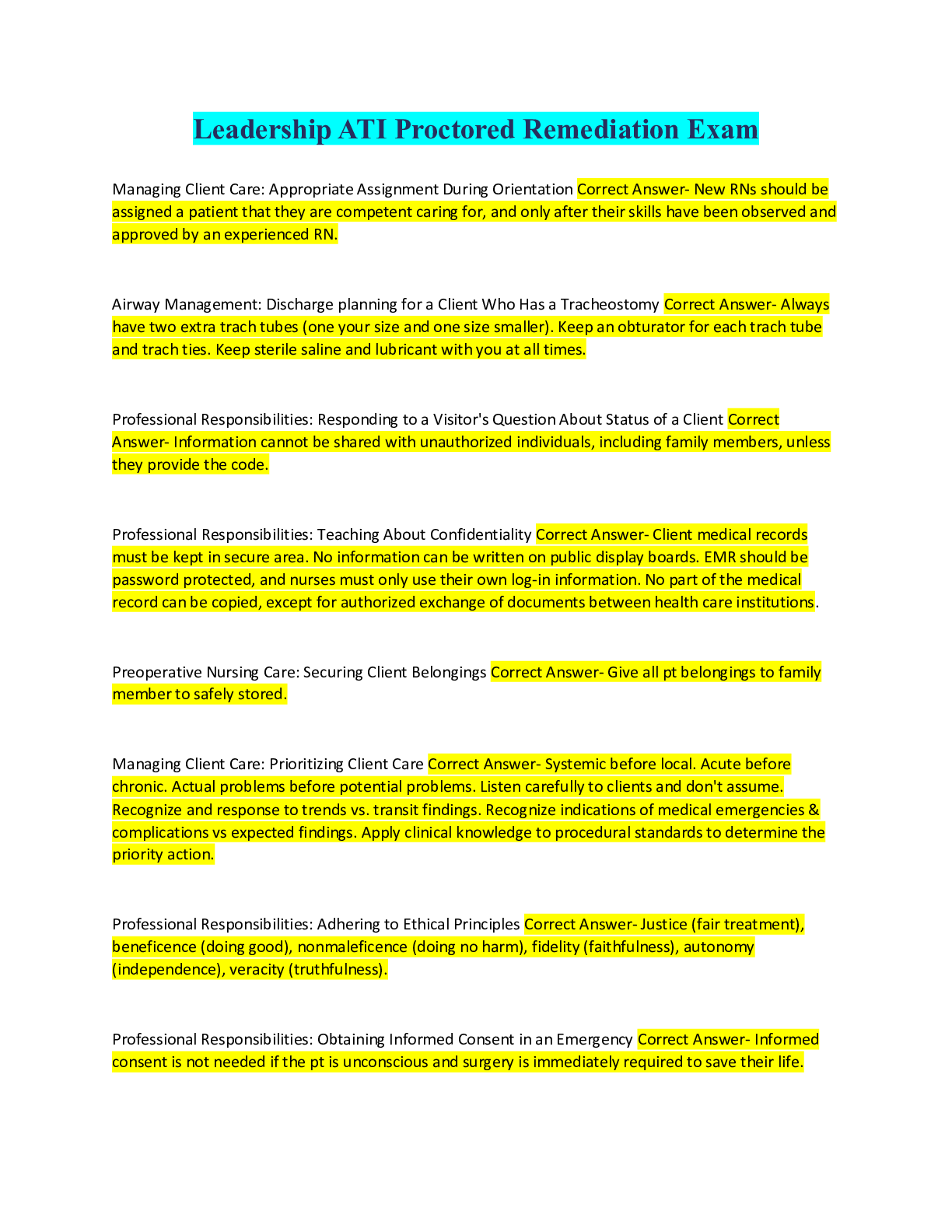 Leadership & Management > ATI > ATI proctored leadership (All)