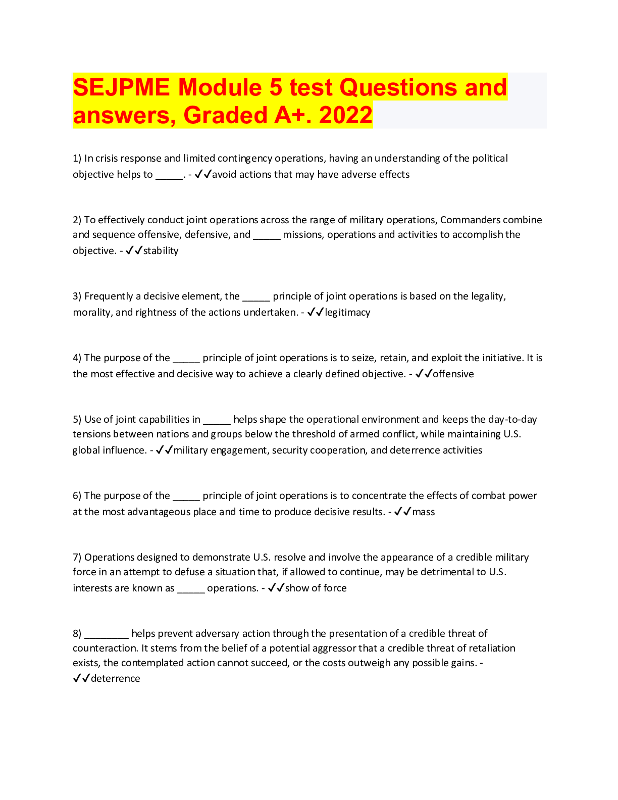 Leadership & Management > QUESTIONS & ANSWERS > SEJPME Module 5 test Questions and Answers, Graded A+ (All)
