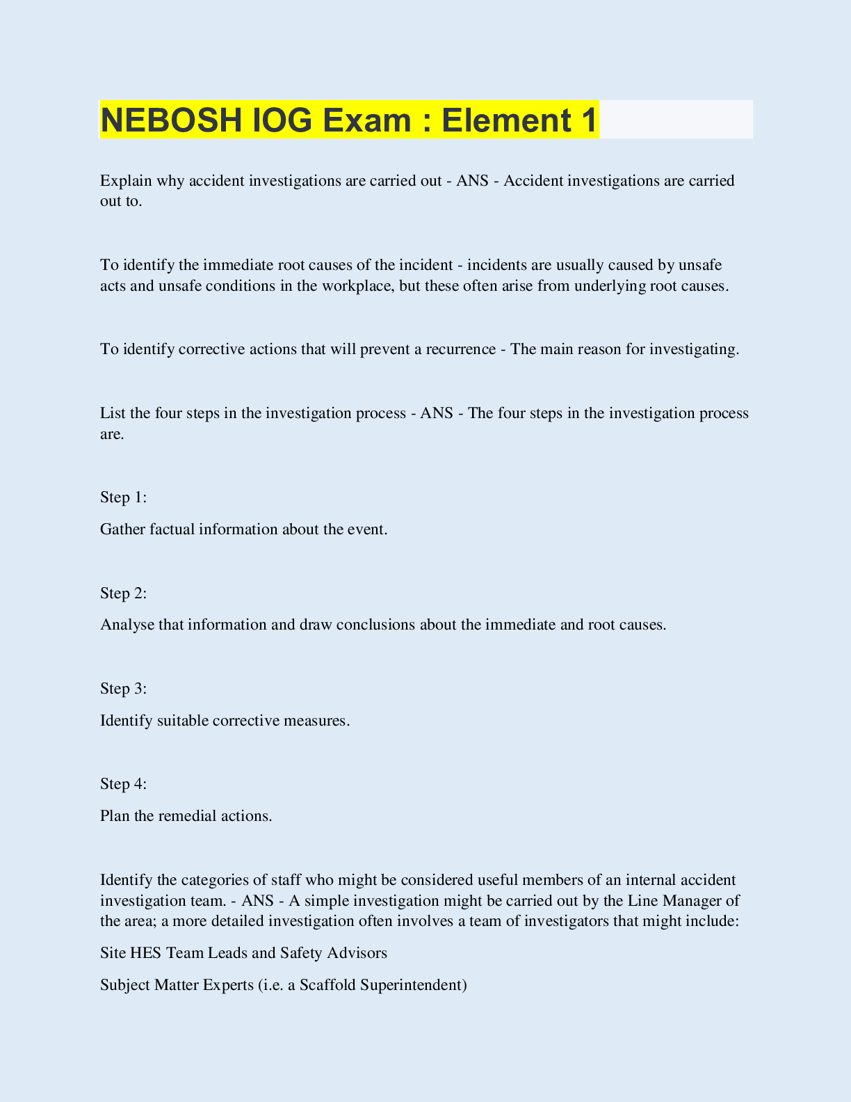 Project Management > EXAM > NEBOSH IOG Exam : Element 1 | 100% Correct Answers (All)