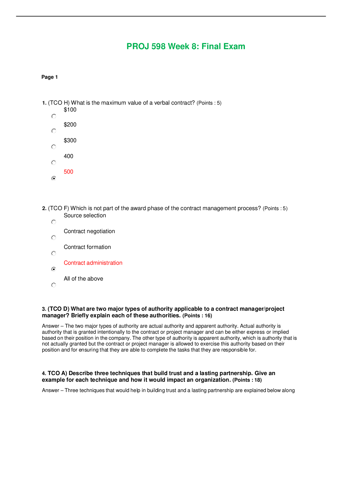 Project Management > PROJECT FINAL > PROJ 598 Week 5 Assignment; Negotiation Exercise LATEST PROJECT OF 2020/2021 GUARANTEED GRADE A+SCORE (All)