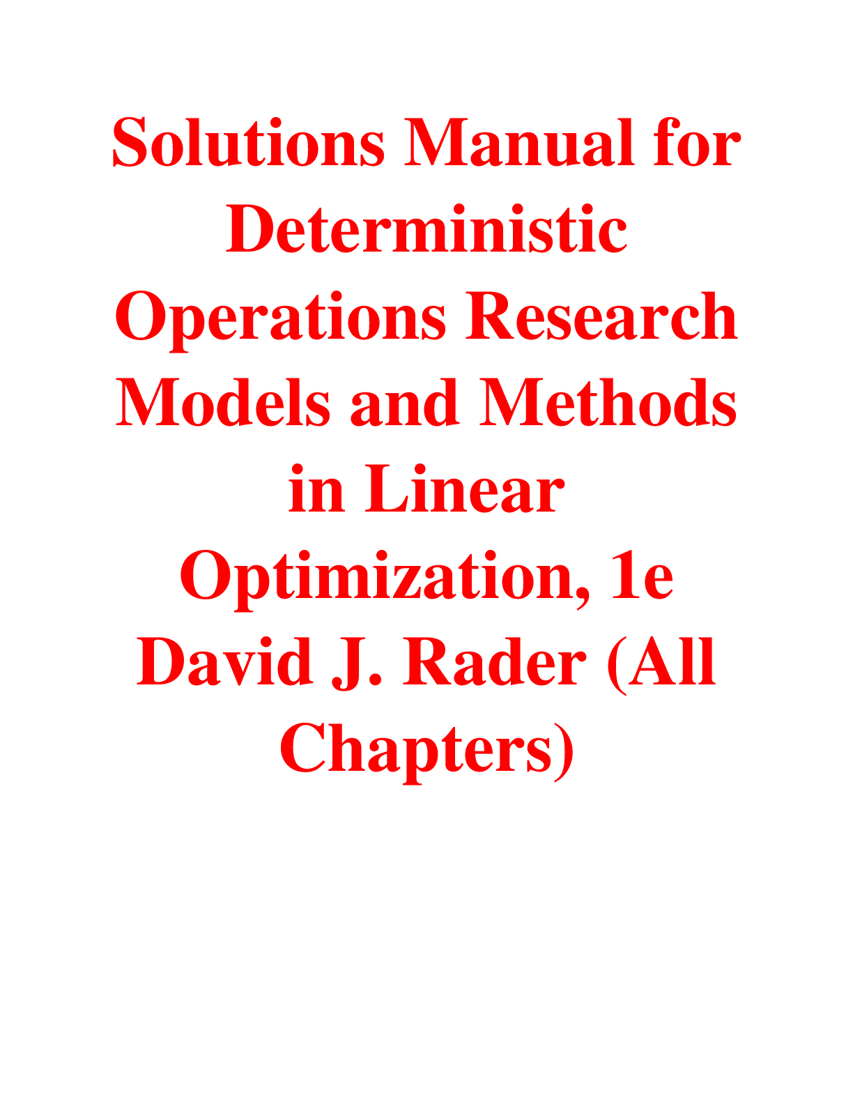 Research Methods > SOLUTIONS MANUAL > Deterministic Operations Research Models and Methods in Linear Optimization, 1e David Rader (Solutions Manual) (All)