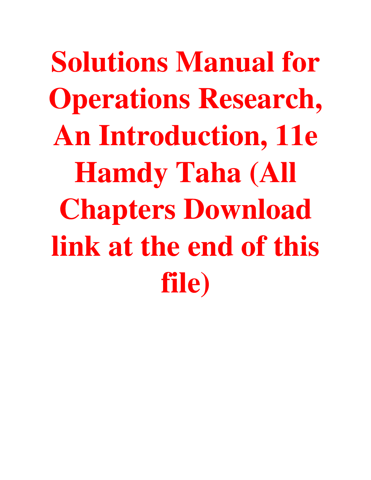 Research Methods > SOLUTIONS MANUAL > Operations Research, An Introduction, 11e Hamdy Taha (Solutions Manual) (All)