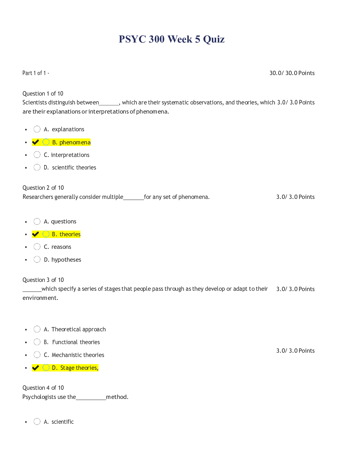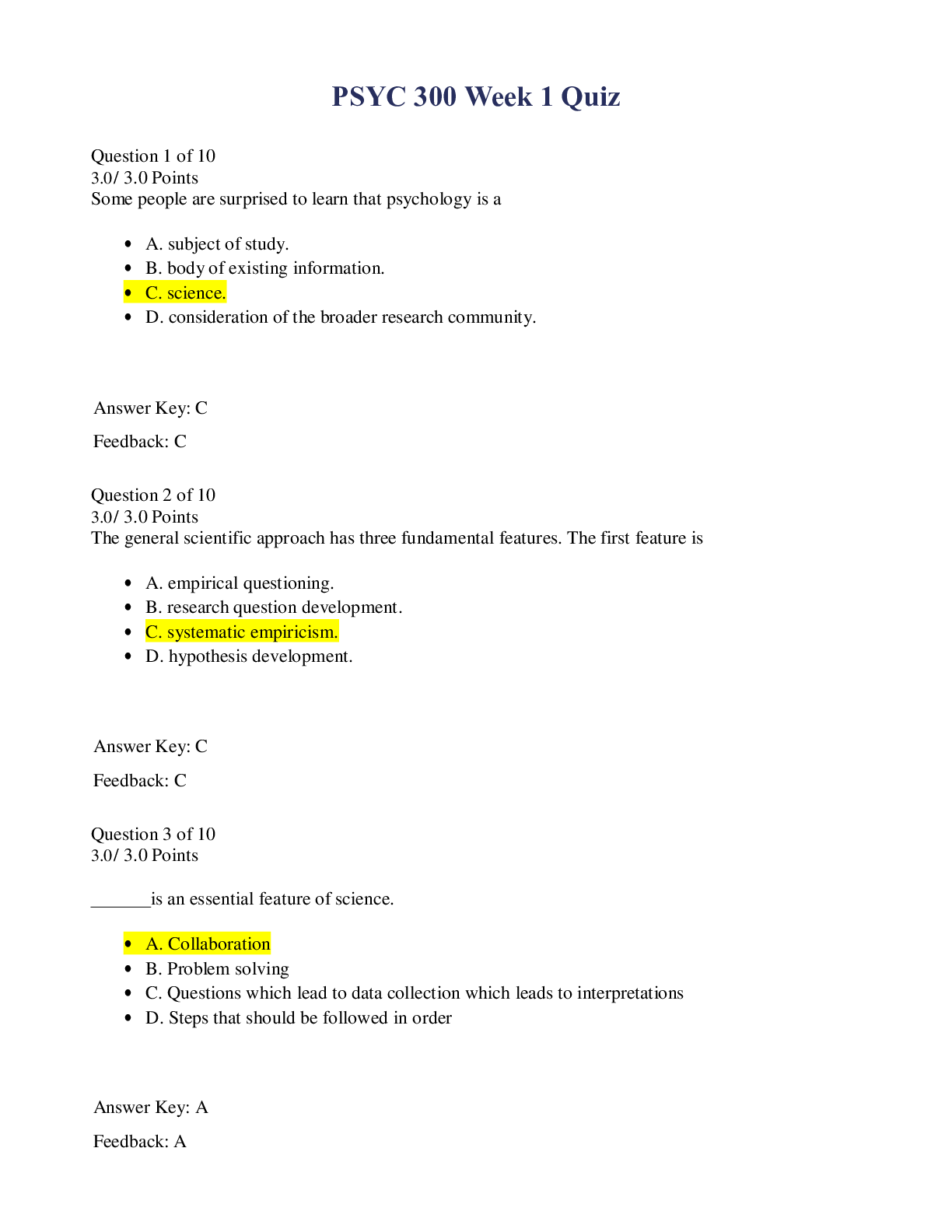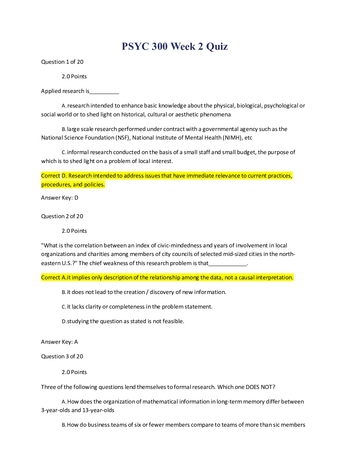 Research Methods > EXAM > PSYC 300 Week 2 Quiz - Questions & Answers (All)