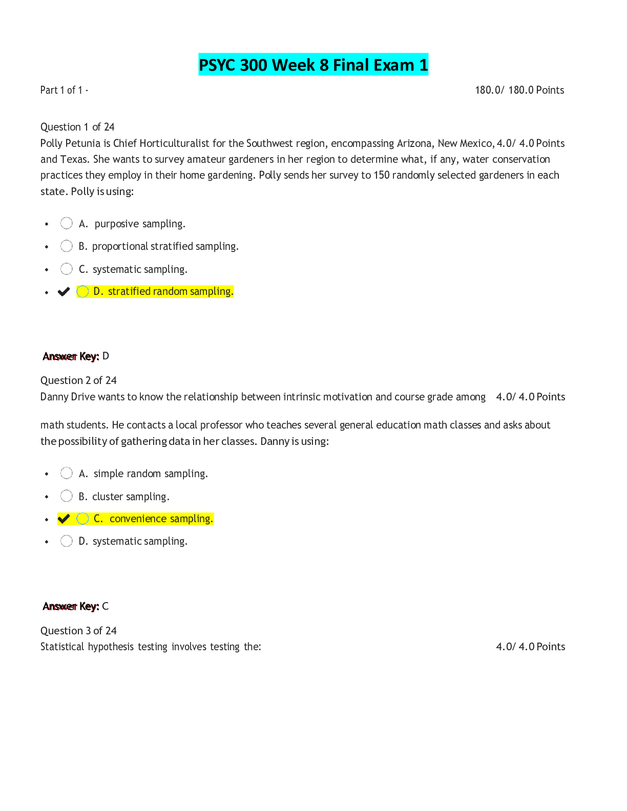 Research Methods > EXAM > PSYC 300 Final Exam 1 – Question and Answers > 180/180 Points (Graded A) (All)