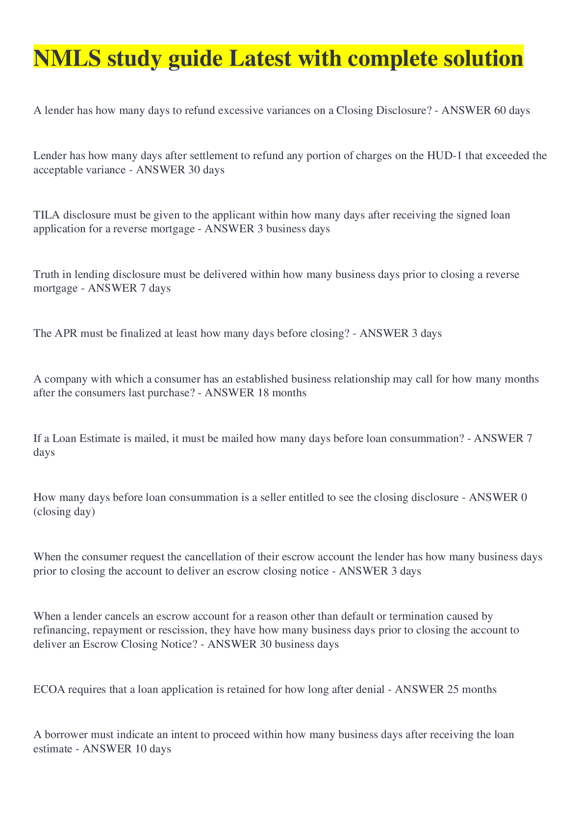 Business Research > STUDY GUIDE > NMLS study guide Latest with complete solution (All)