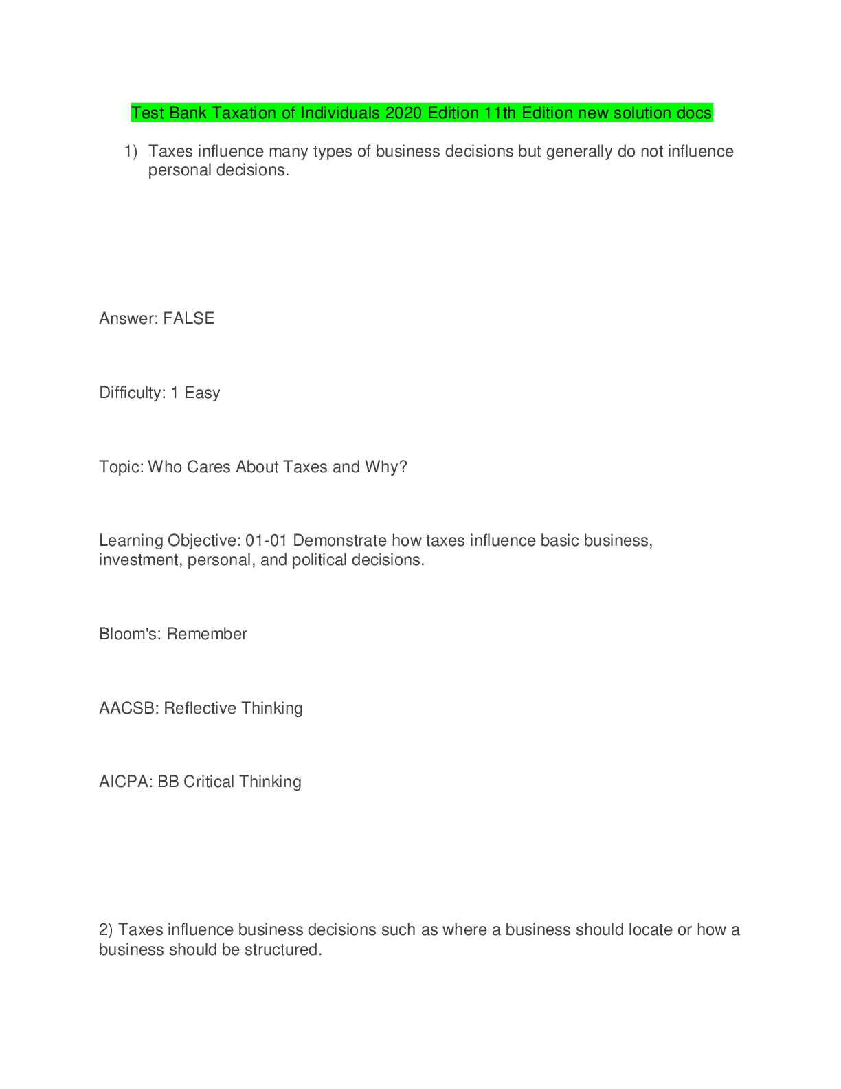 Business Research > STUDY GUIDE > CHMG 111.01 Test Bank Taxation of Individuals 2020 Edition 11th Edition new solution docs (All)