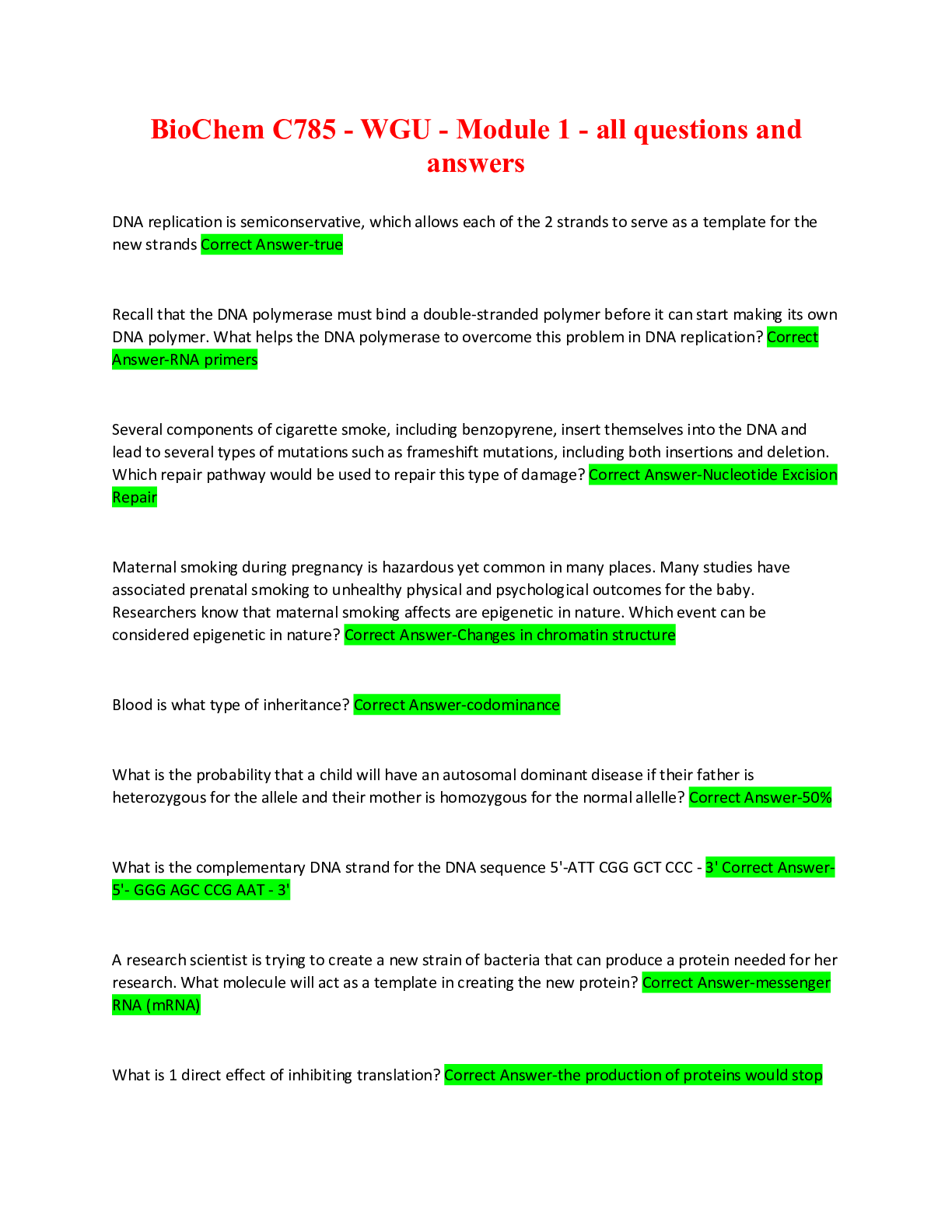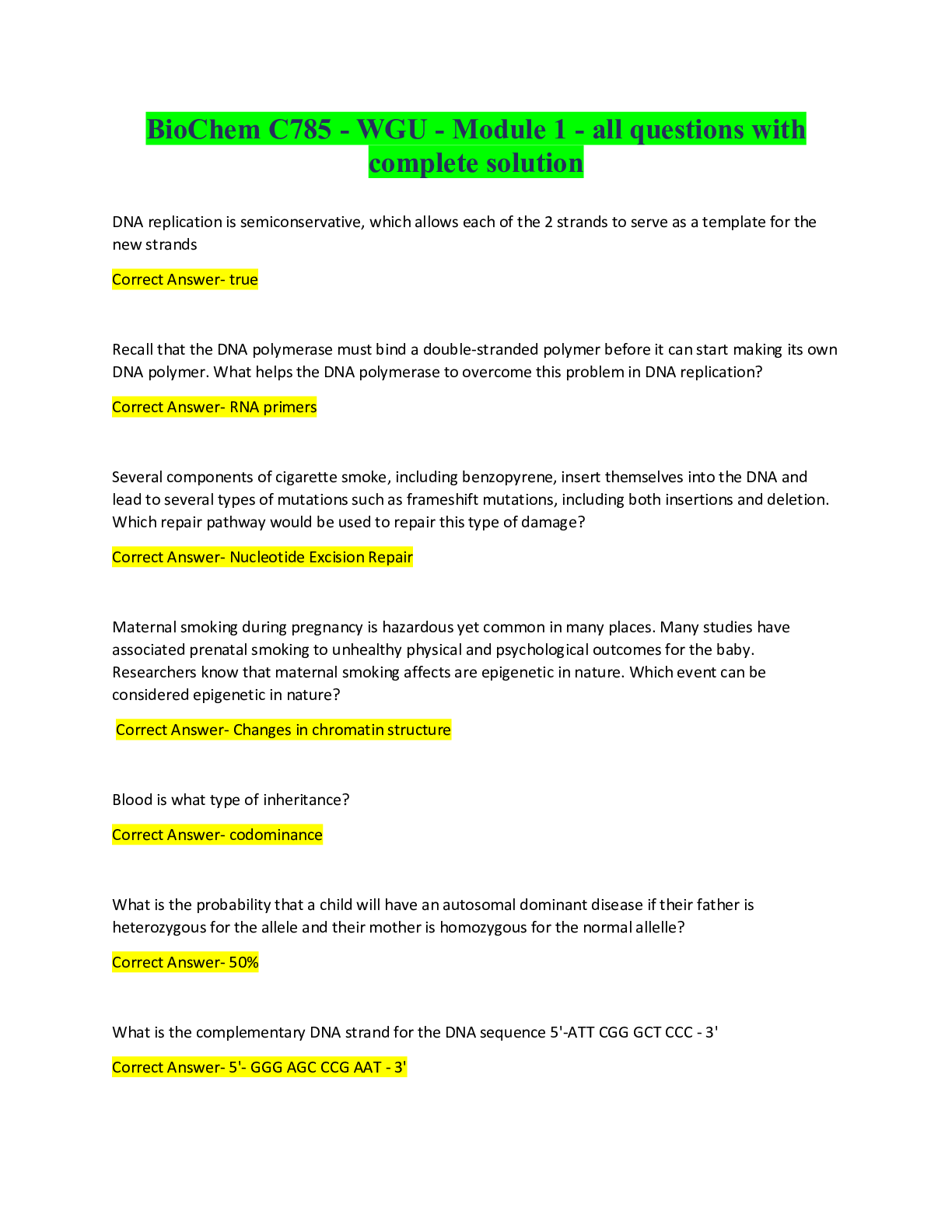 BioChemistry > QUESTIONS & ANSWERS > BIOCHEMISTRY C785 Practice Set With Correct Answers (COMPREHENSIVE DNA QUESTIONS 2023) Solved 100% (All)