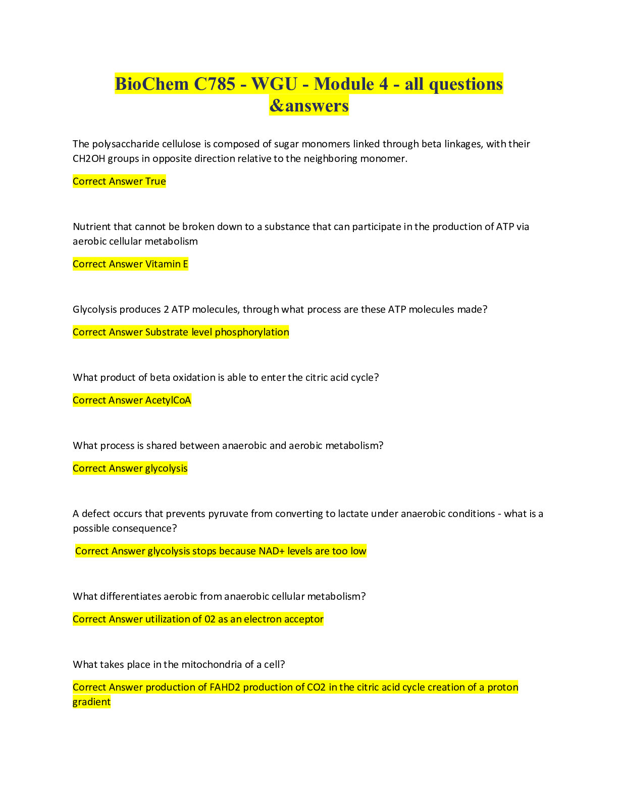 BioChemistry > QUESTIONS & ANSWERS > Biochem c785 wgu module 4 all questions answered (All)