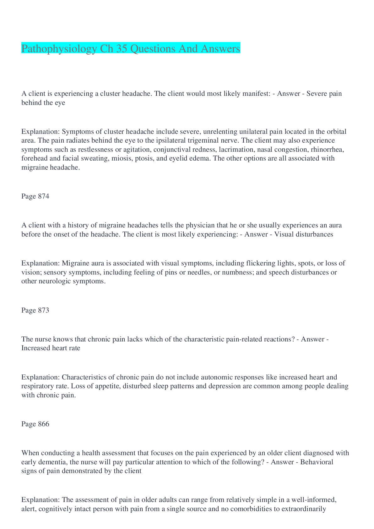 Pathophysiology > EXAM > Pathophysiology Ch 35 Questions And Answers (All)