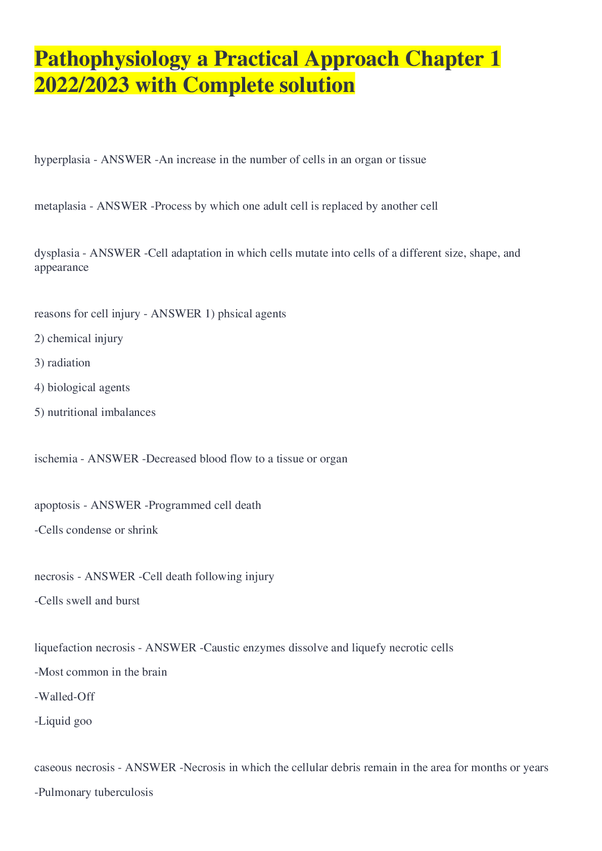 Pathophysiology > EXAM > Pathophysiology a Practical Approach Chapter 1 2022/2023 with Complete solution (All)