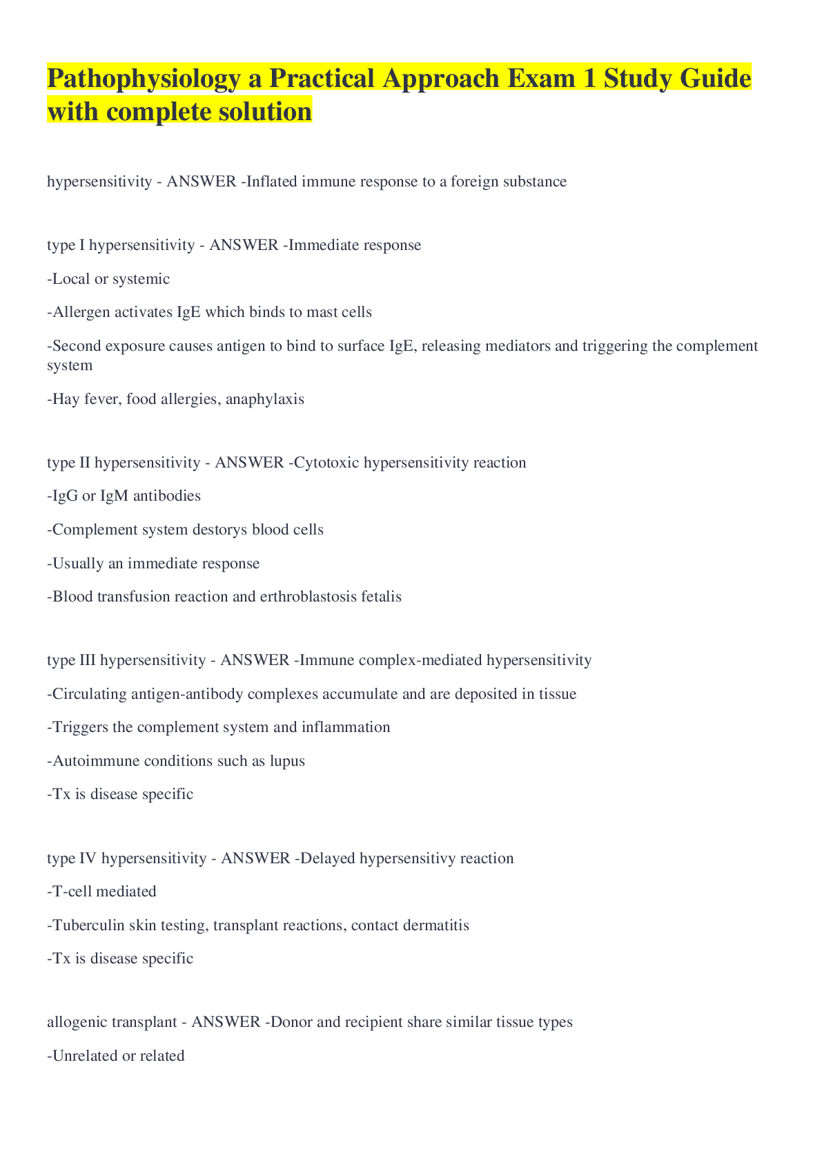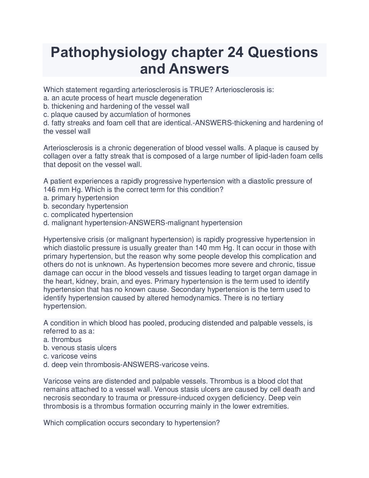Pathophysiology > QUESTIONS & ANSWERS > Patho Final Study guide Questions And Answers 2022 Latest (All)