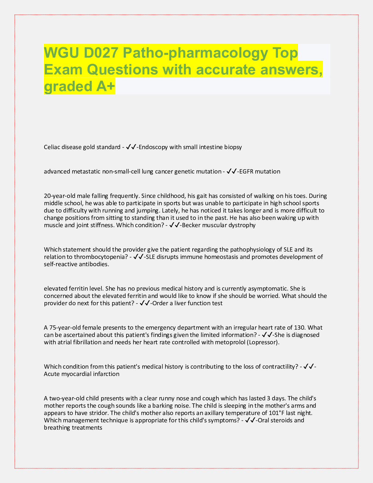 Pathophysiology > QUESTIONS & ANSWERS > WGU D027 review Q, Top Exam Questions and answers, rated A+ (All)