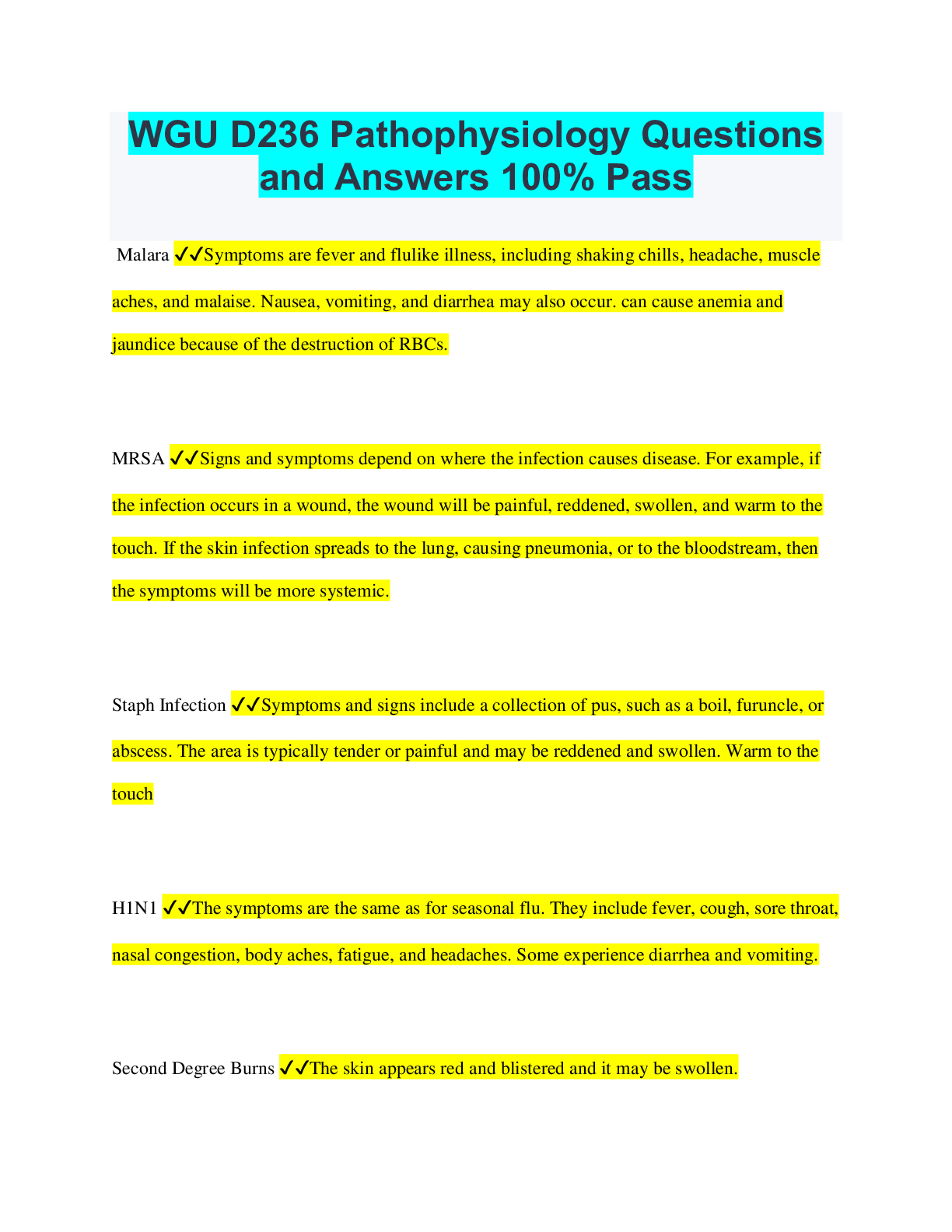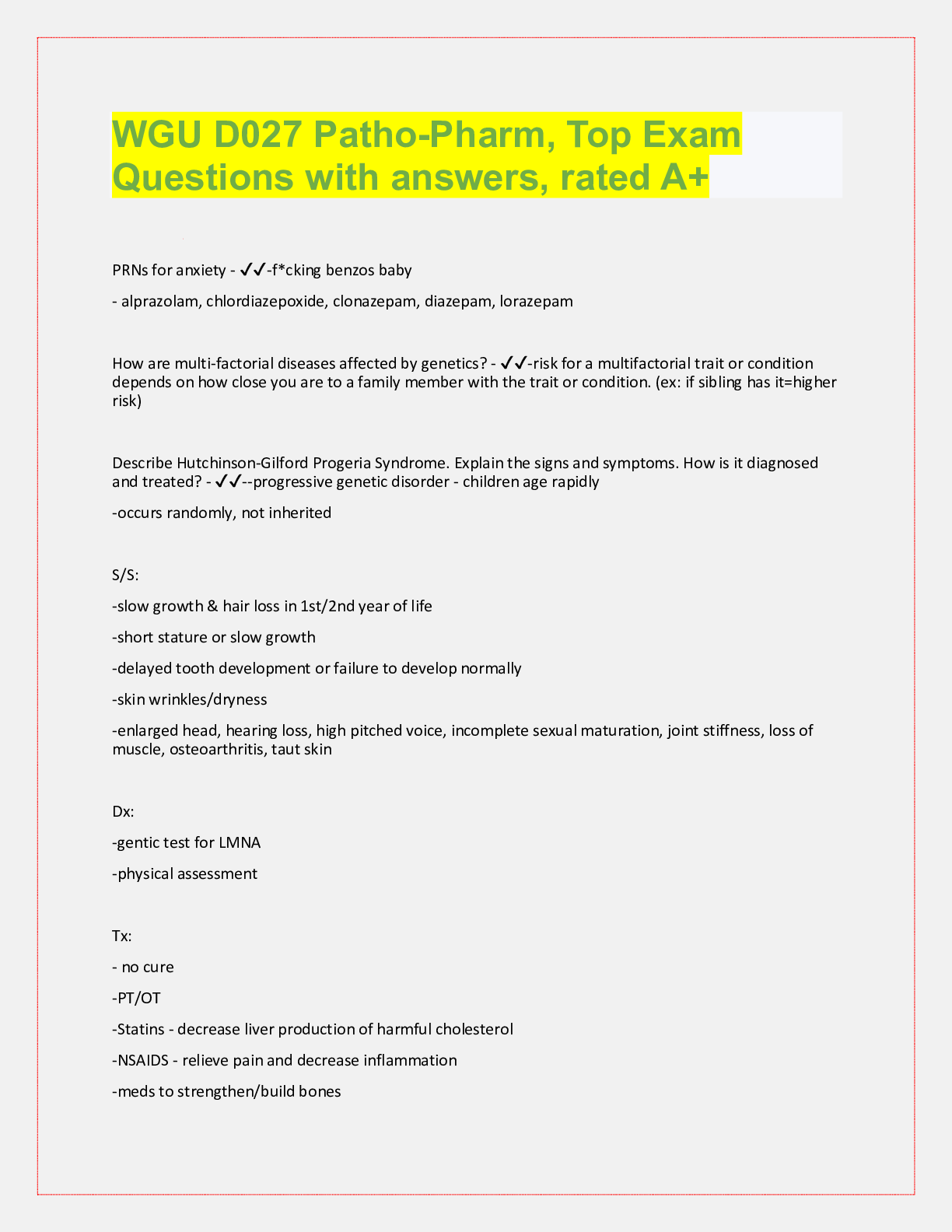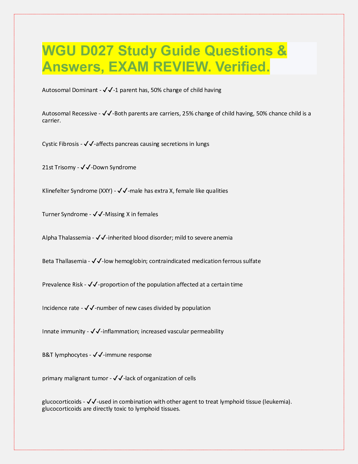 Pathophysiology > QUESTIONS & ANSWERS > WGU D027 Study Guide Questions & Answers, EXAM REVIEW. Verified. (All)