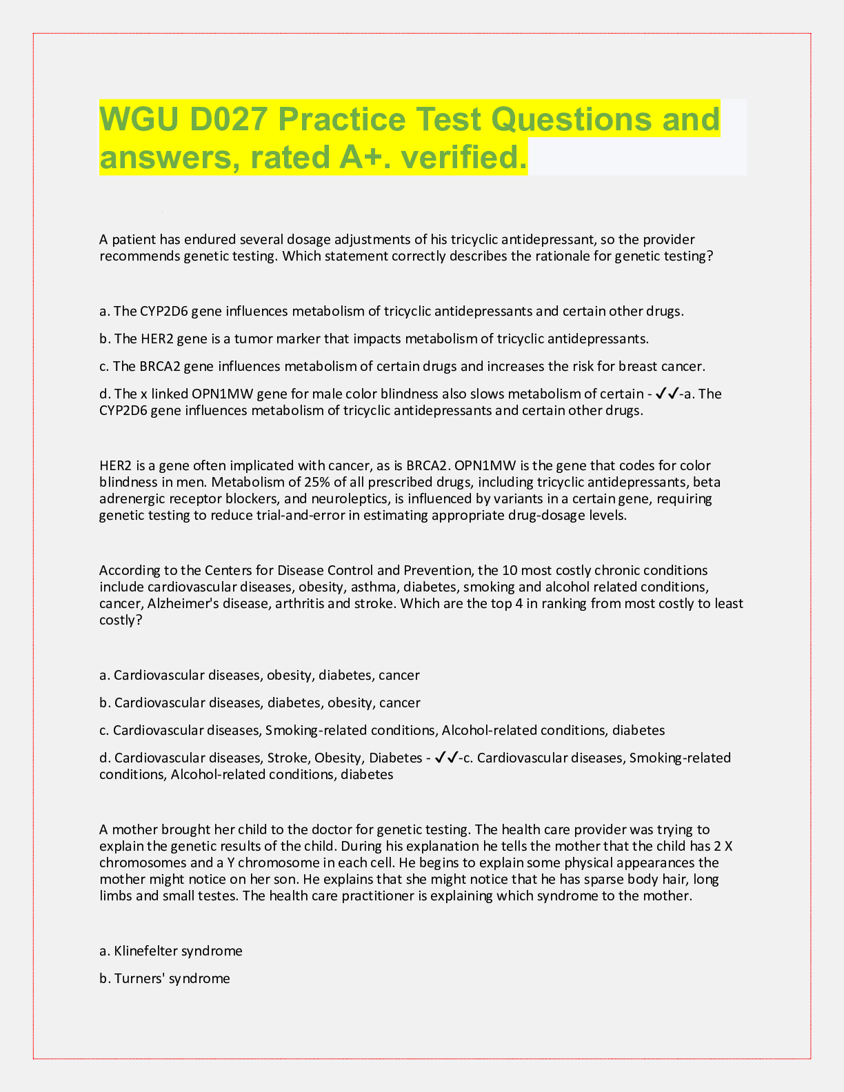 Pathophysiology > QUESTIONS & ANSWERS > WGU D027, Exam Questions with answers, Verified, rated A+. (All)