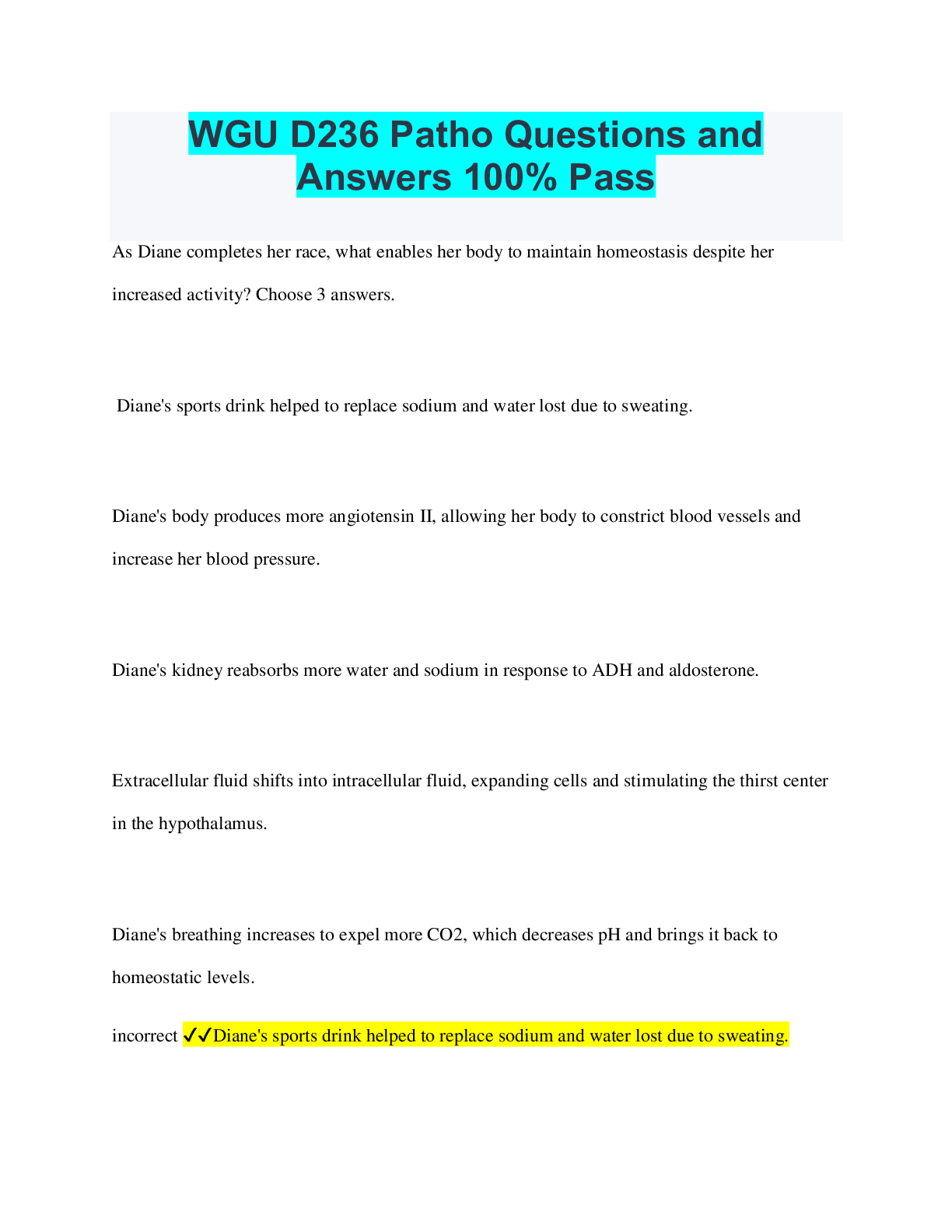 Pathophysiology > QUESTIONS & ANSWERS > WGU D236 Patho Questions and Answers 100% Pass (All)