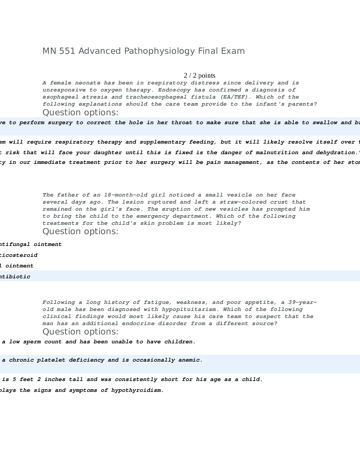 Pathophysiology > EXAM > Kaplan University - MN 551 Advanced Pathophysiology Final Exam 2020. (Grade A) (All)