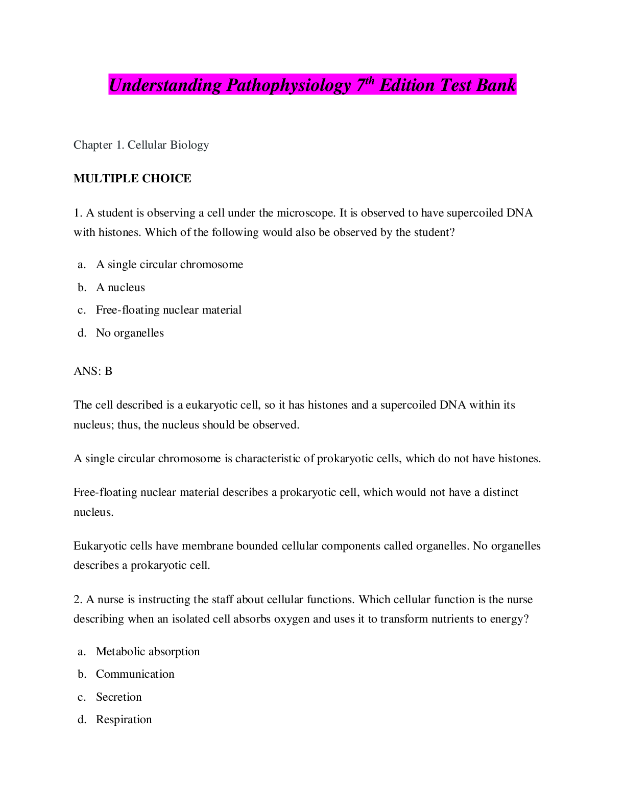 Pathophysiology > TEST BANKS > Understanding Pathophysiology 7th Edition Test Bank| Latest Version, 2021 (All)
