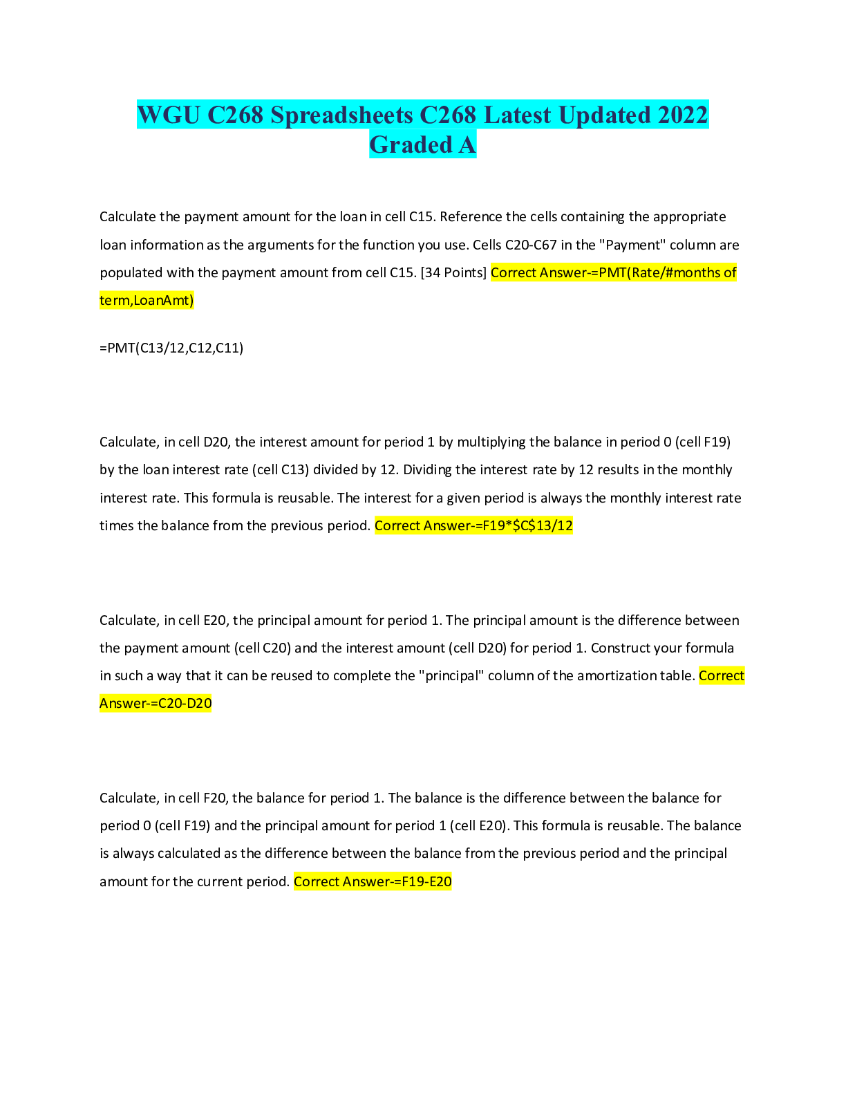 Information Technology > EXAM > WGU C268 Spreadsheets C268 Latest Updated 2022 Graded A (All)