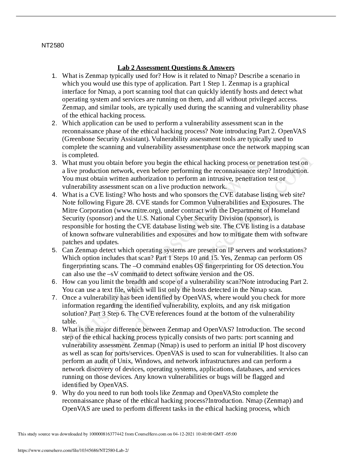 Information Technology > QUESTIONS & ANSWERS > ITT Tech Grand Rapids - NT 2580NT2580 Lab #2 (All)