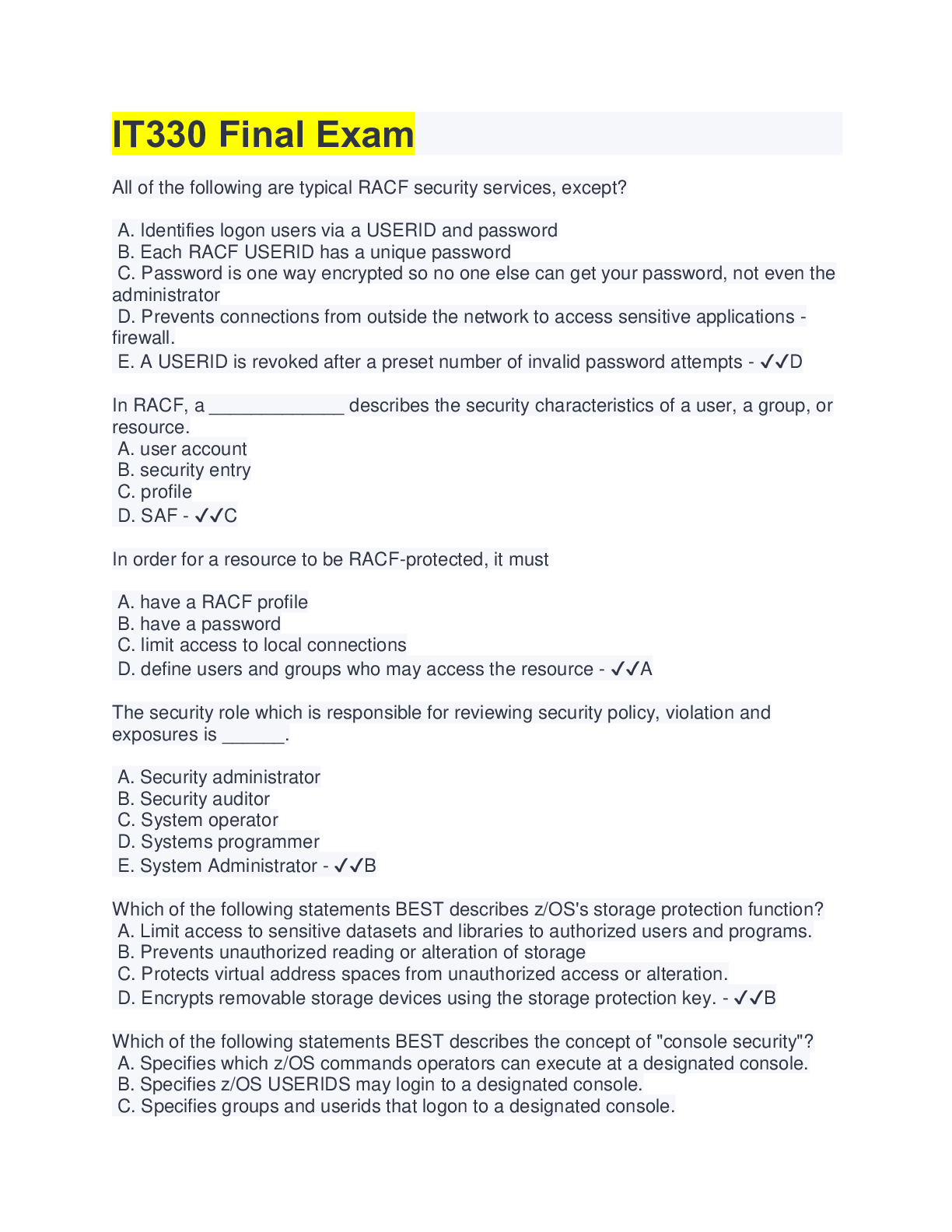 Information Technology > QUESTIONS & ANSWERS > IT330 Final Exam (All)