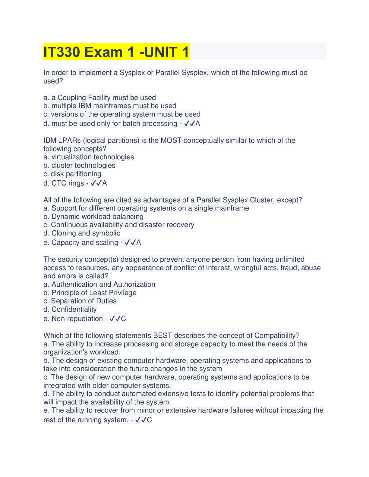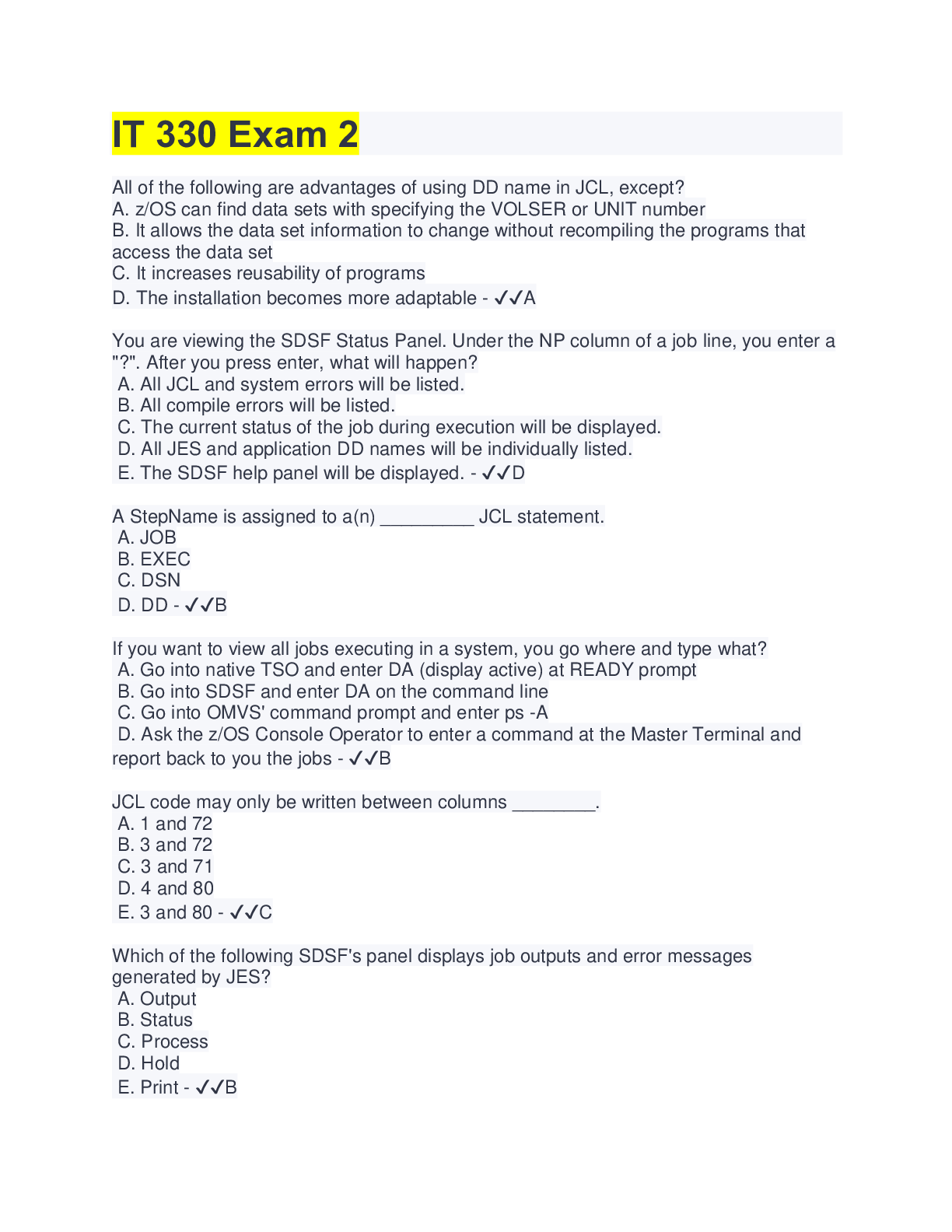 Information Technology > QUESTIONS & ANSWERS > IT 330 Exam 2 (All)