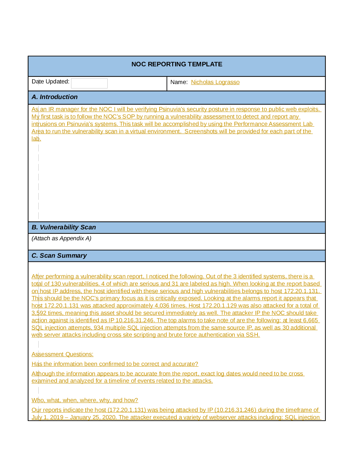 Information Technology > QUESTIONS & ANSWERS > WGU C795 NOC REPORTING TEMPLATE LATEST UPDATED 2022 (All)