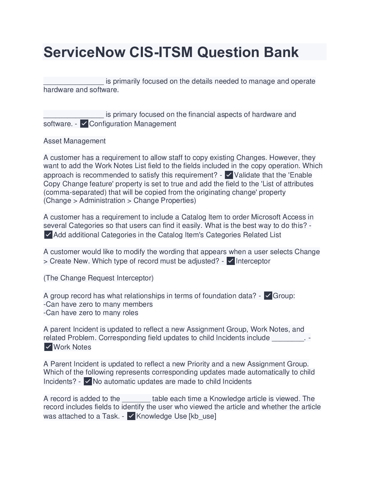 Information Technology > EXAM > ServiceNow CIS-ITSM Question Bank 2022/2023 (All)