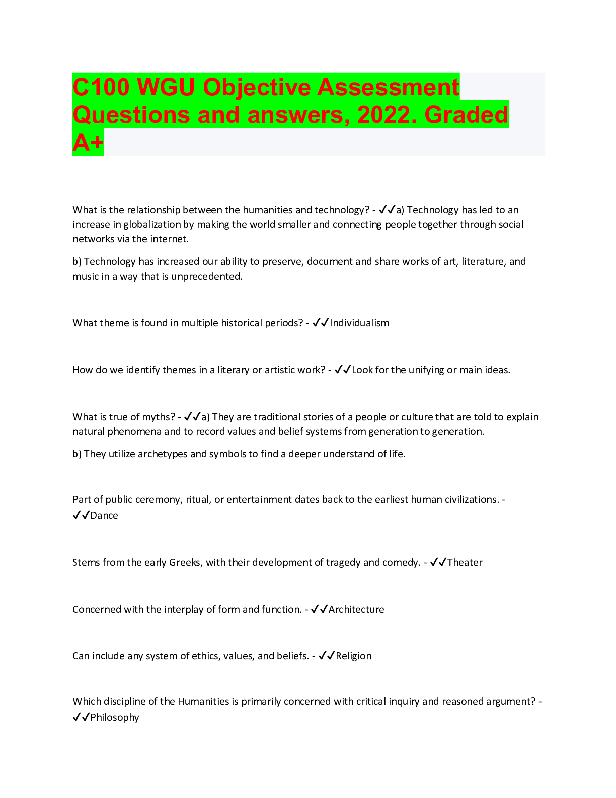 Information Technology > QUESTIONS & ANSWERS > C100 WGU Objective Assessment Questions and answers, 2022. Graded A+ (All)