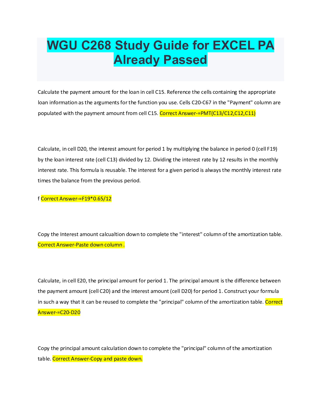 Information Technology > EXAM > WGU C268 Study Guide for EXCEL PA Already Passed (All)