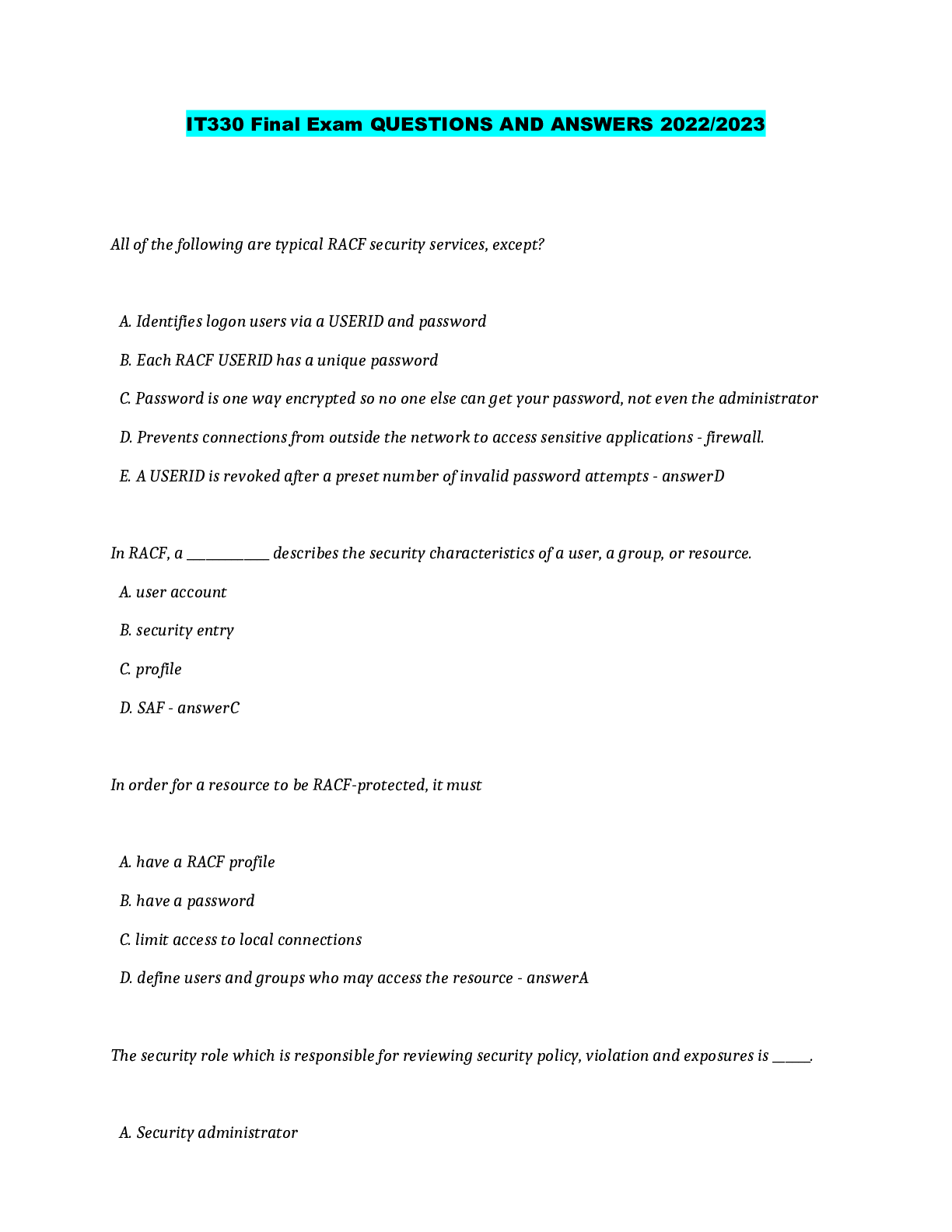 Information Technology > QUESTIONS & ANSWERS > IT330 Final Exam QUESTIONS AND ANSWERS 2022/2023 (All)