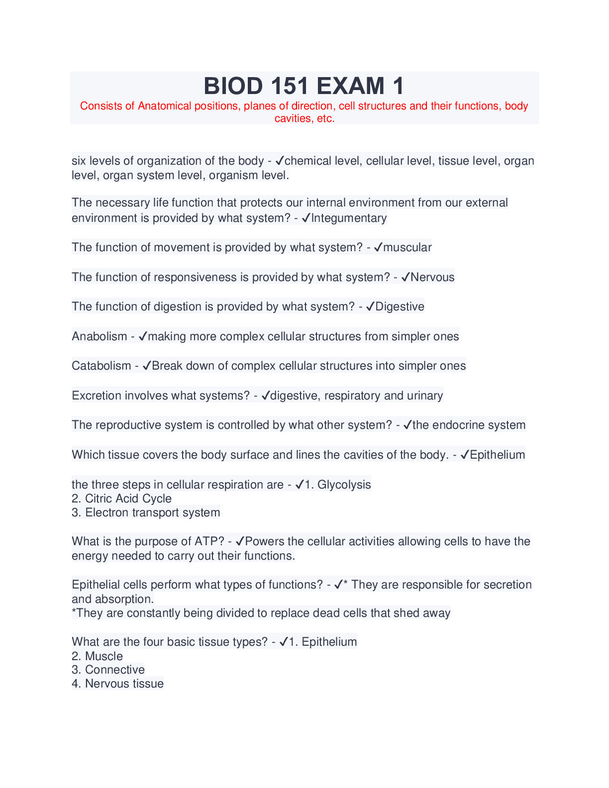 Information Technology > EXAM > BIOD 151 EXAM 1 (Latest 2023/2024) Verified Answers by Expert (All)
