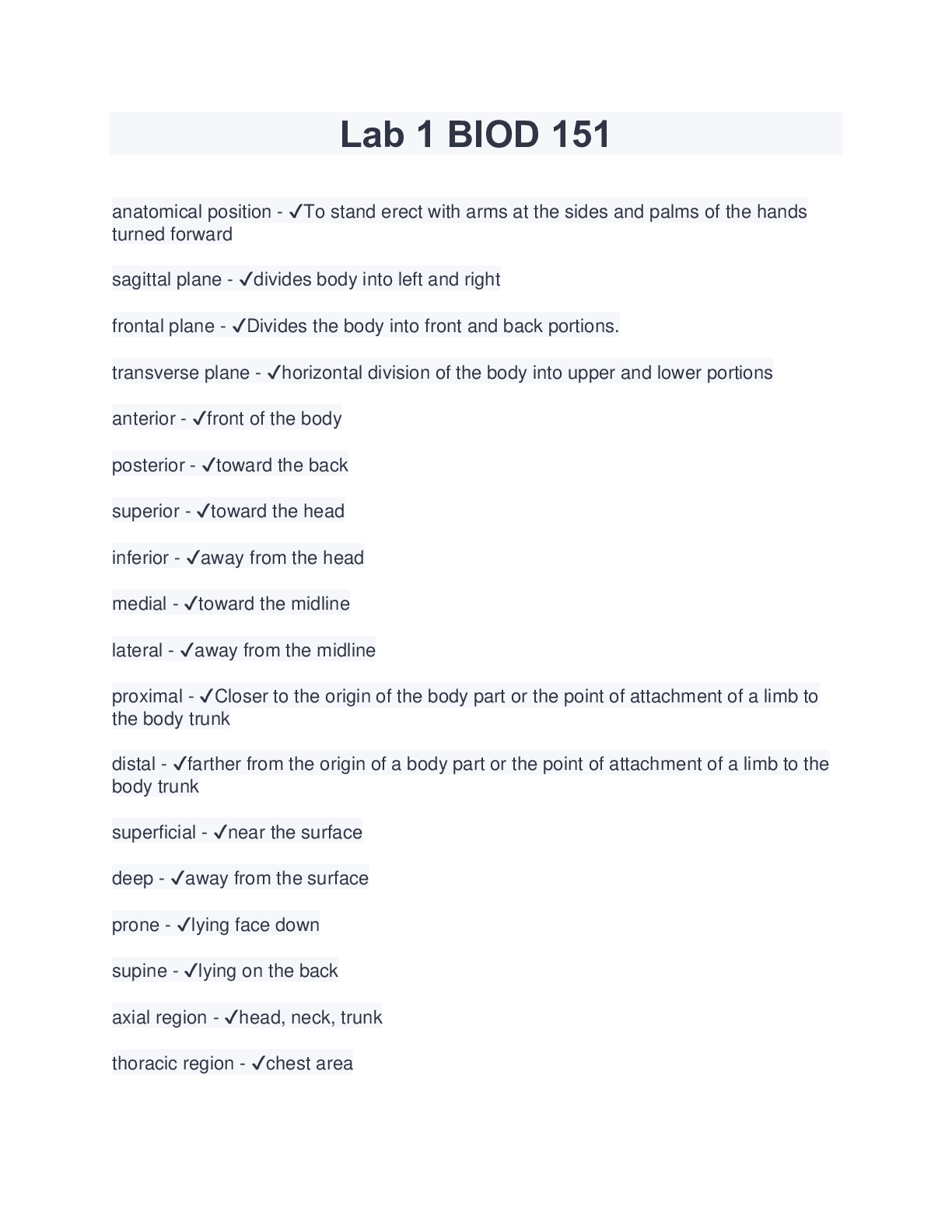 Information Technology > EXAM > Lab 1 BIOD 151 Exam (Latest 2023/2024) Download TO Score A.M (All)