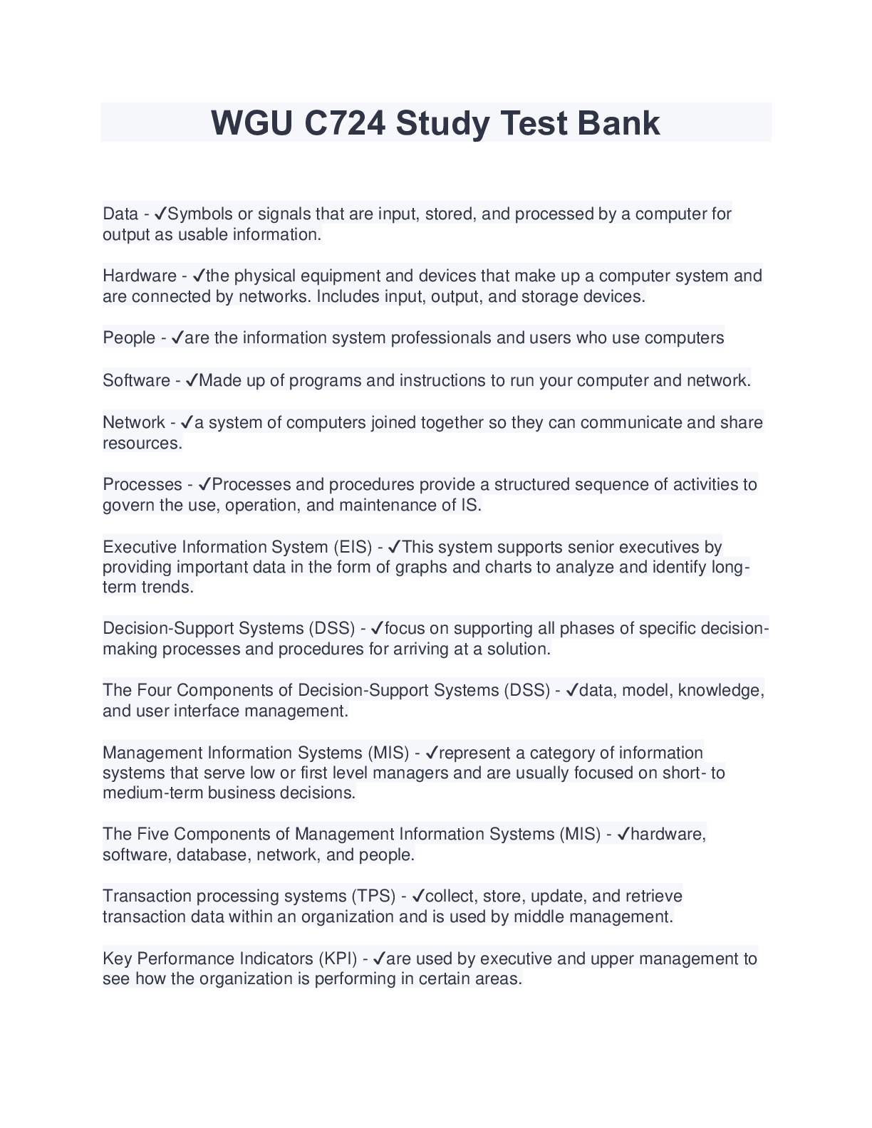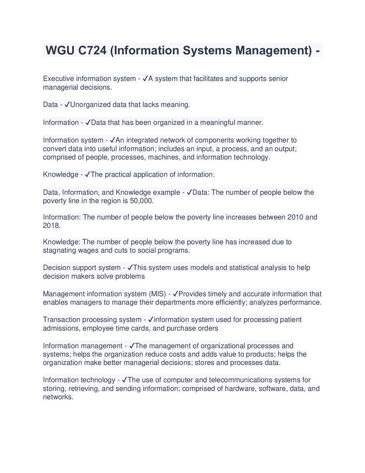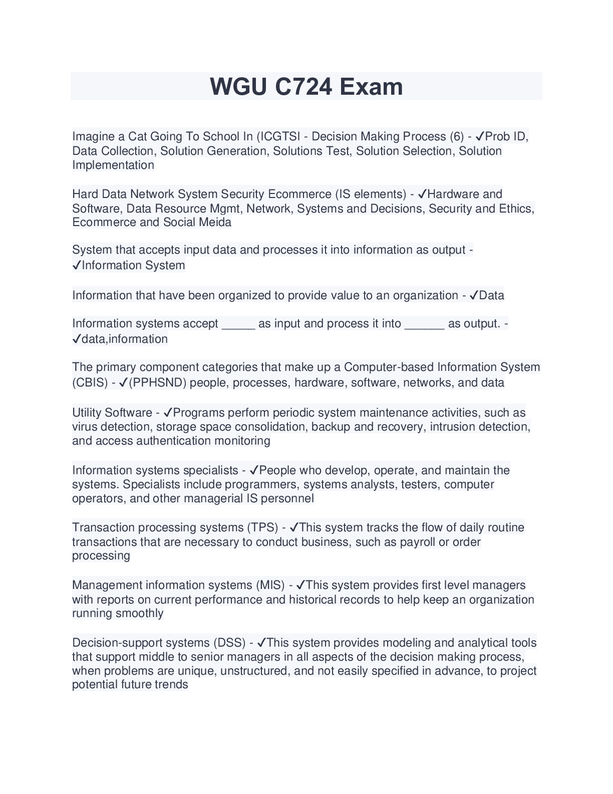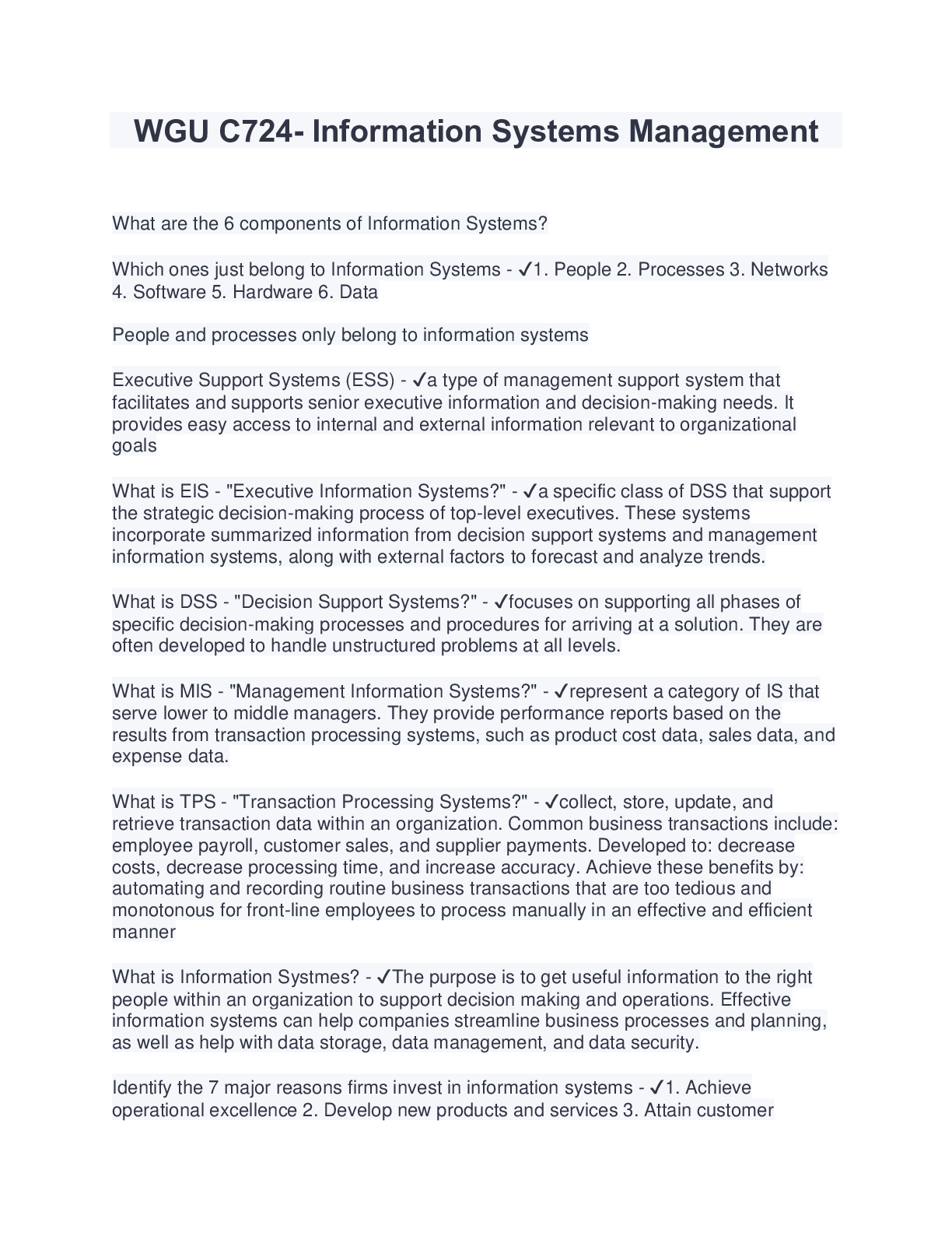 Information Technology > EXAM > WGU C724- Information Systems Management Study Guide (Latest 2023/2024) Download to Score A (All)