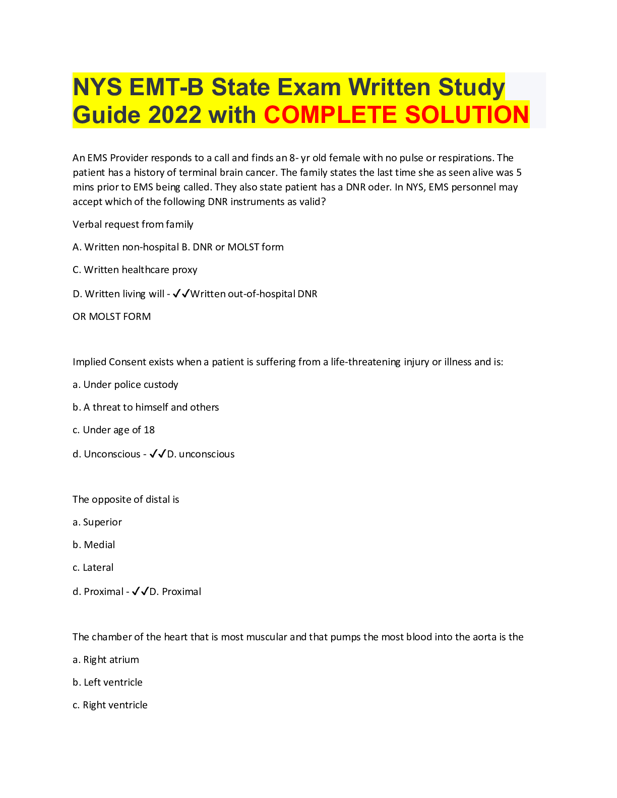Labour Law > EXAM > NYS EMT-B State Exam Written Study Guide 2022 with COMPLETE SOLUTION (All)