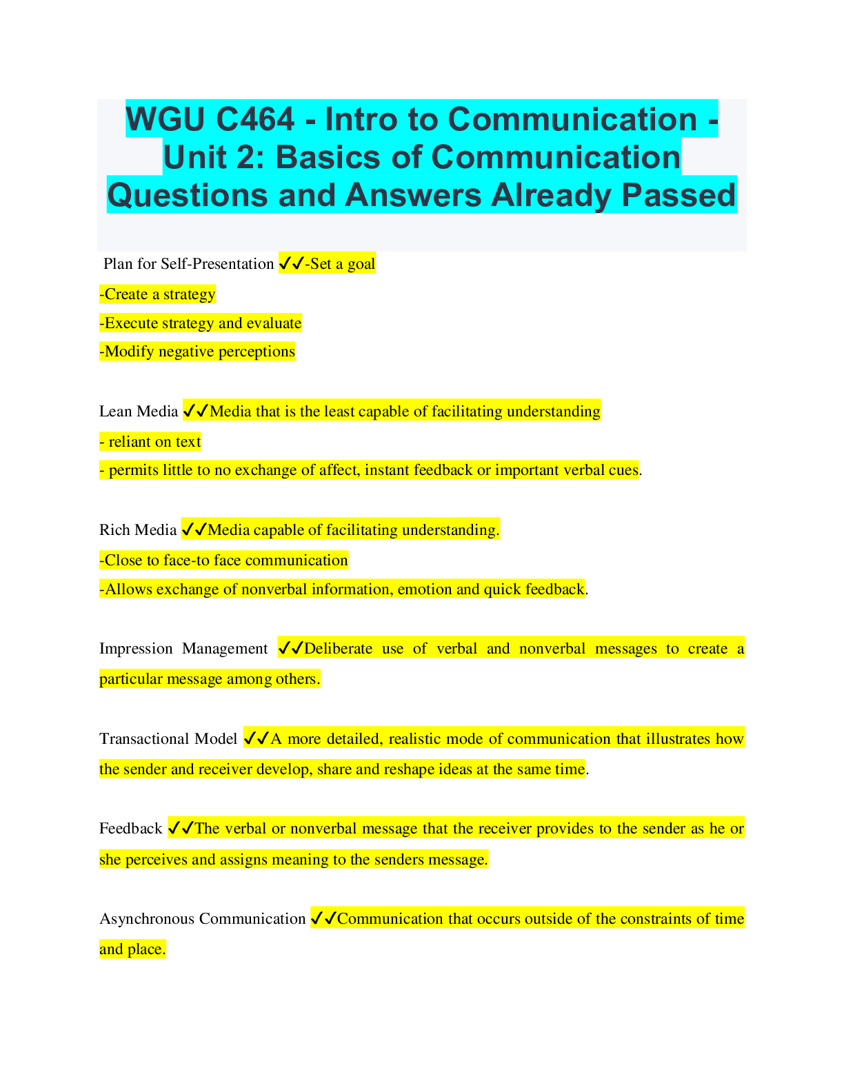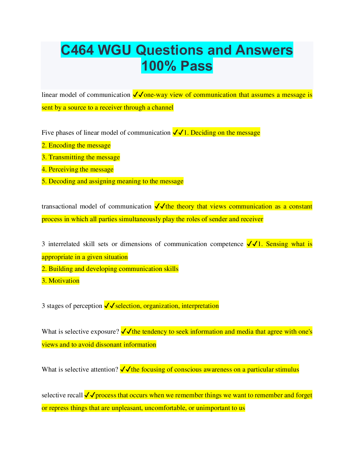 Communication > EXAM > WGU C464 Introduction to Communication Questions and Answers with Complete Solutions (All)