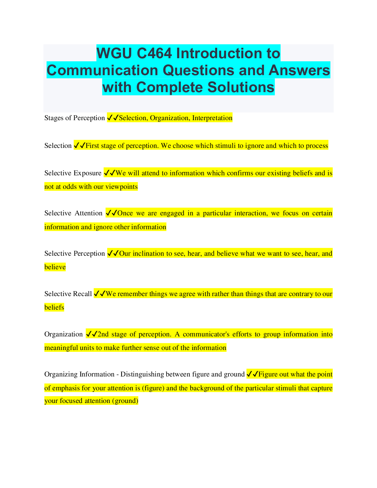 Communication > QUESTIONS & ANSWERS > WGU C464 Introduction to Communication Questions and Answers with Complete Solutions (All)