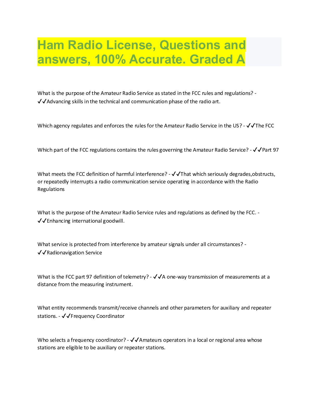 Communication > QUESTIONS & ANSWERS > Ham Radio License, Questions and answers, 100% Accurate. Graded A (All)