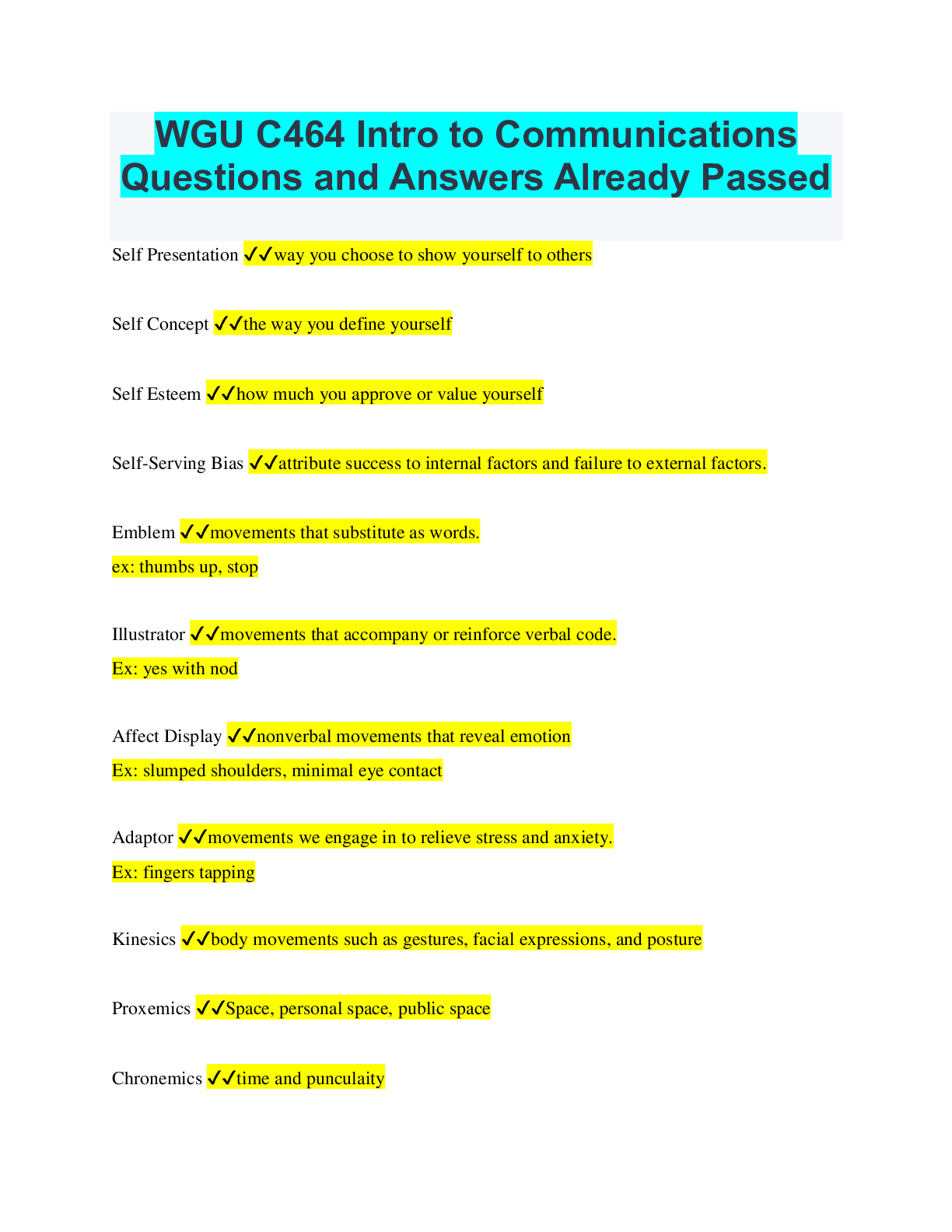 Communication > QUESTIONS & ANSWERS > WGU C464 - Intro to Communication - Unit 2: Basics of Communication Questions and Answers Already Passed (All)