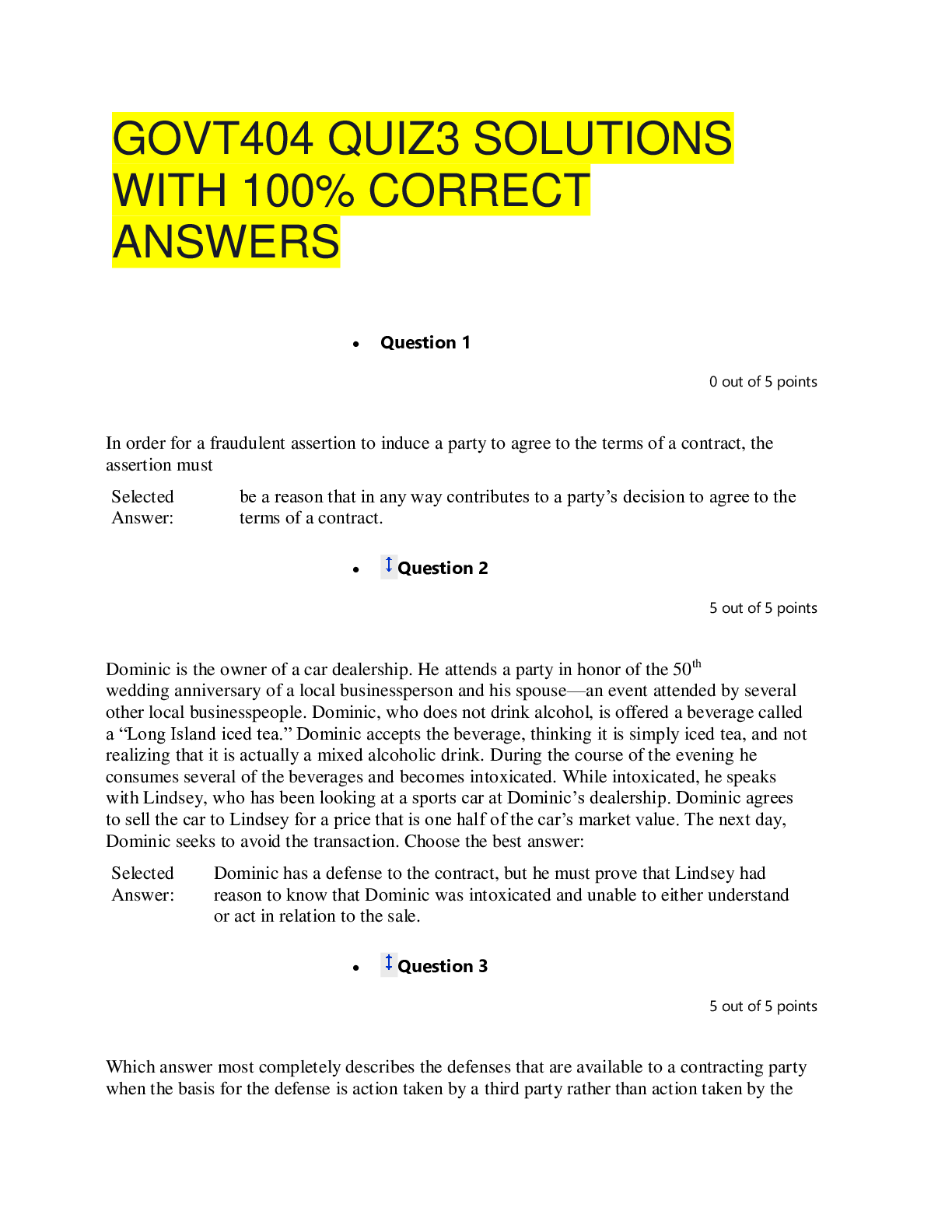 Government > QUESTIONS & ANSWERS > GOVT404 QUIZ3 SOLUTIONS WITH 100% CORRECT ANSWERS 2021 (All)