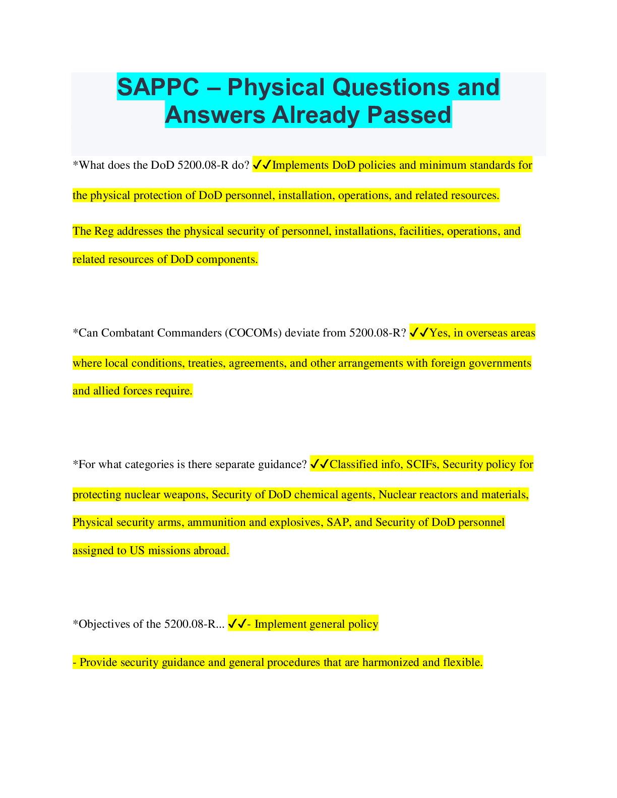 Government > QUESTIONS & ANSWERS > SAPPC – Physical Questions and Answers Already Passed (All)