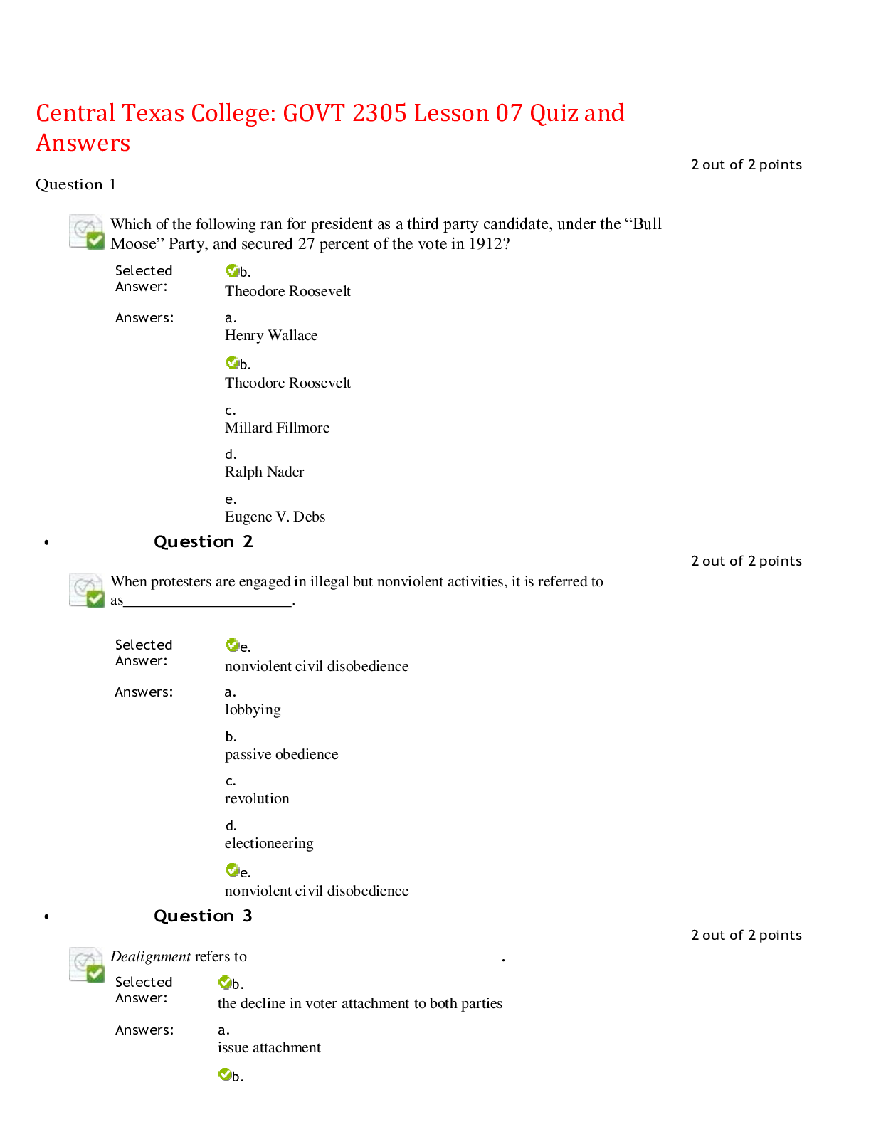 Government > EXAM > Central Texas College: GOVT 2305 Lesson 07 Quiz and Answers,100% CORRECT (All)