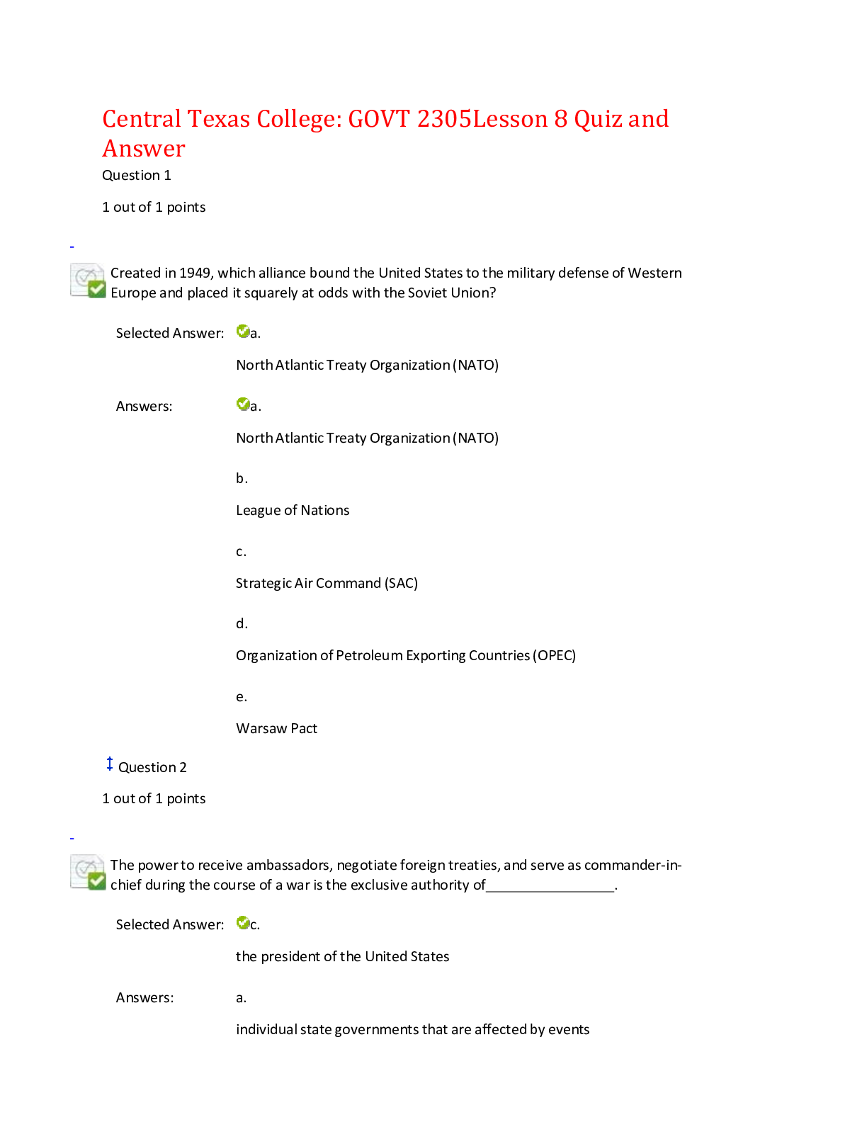 Government > EXAM > Central Texas College: GOVT 2305 Lesson 8 Quiz and Answer,100% CORRECT (All)