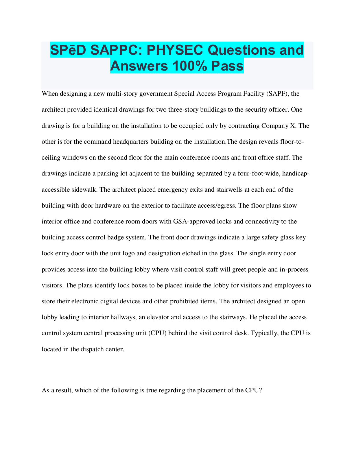 Government > QUESTIONS & ANSWERS > SPēD SAPPC: PHYSEC Questions and Answers 100% Pass (All)