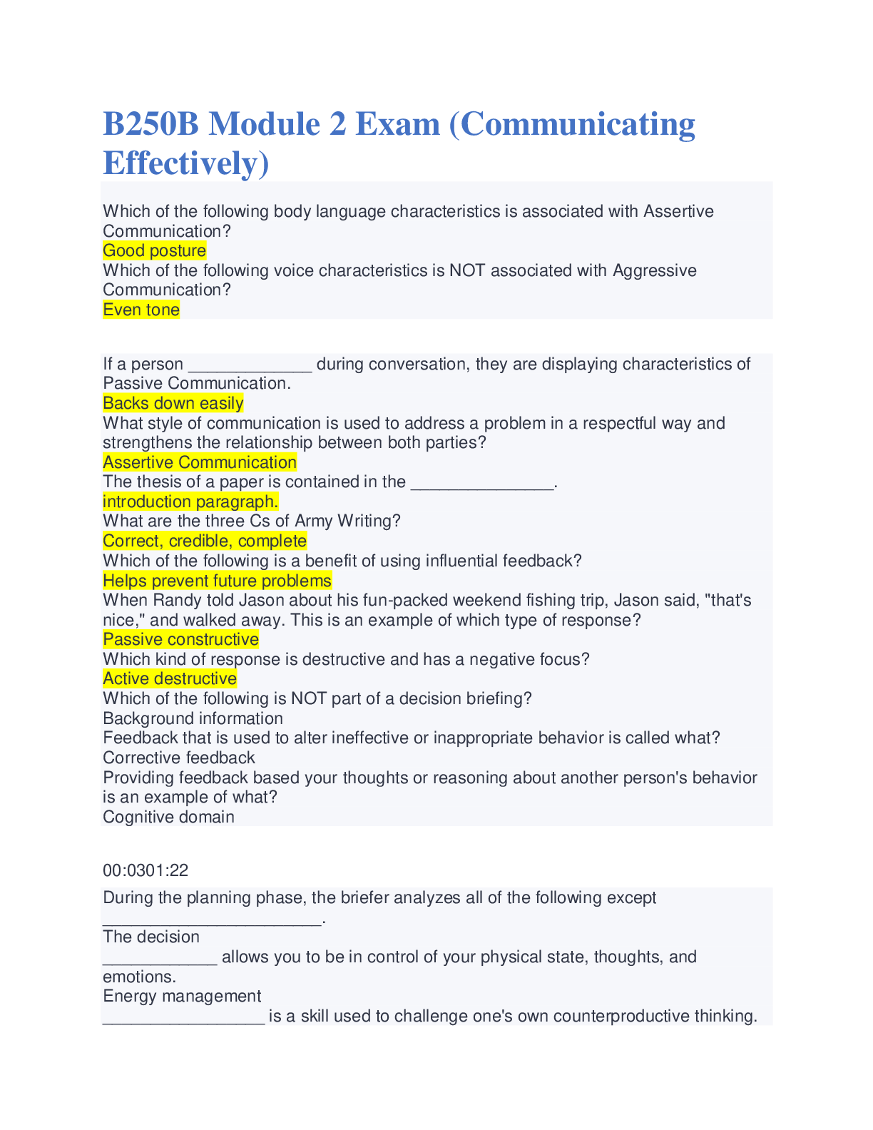 Critical Thinking > EXAM > B250B Module 2 Exam (Communicating Effectively) with Verified Answers (All)