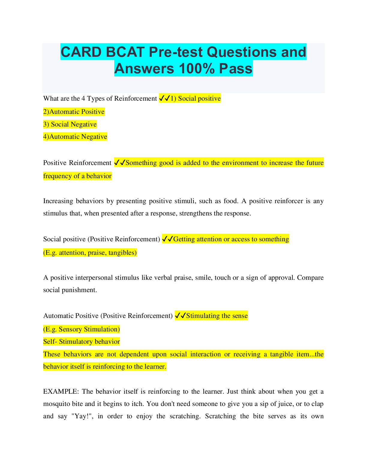 Critical Thinking > QUESTIONS & ANSWERS > CARD BCAT Pre-test Questions and Answers 100% Pass (All)